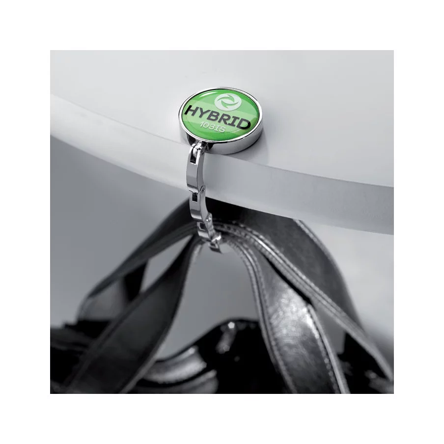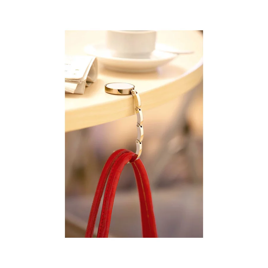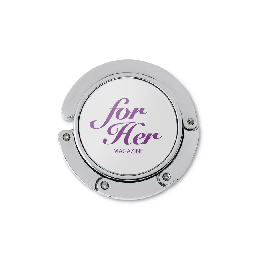 Découvrez un objet pub pratique, utile et surtout personnalisable, un accessoire pub idéal pour tenir votre sac à main hors du sol. Avec notre accroche sac personnalisé, offrez à vos clients et collaborateurs un goodies pas cher pour une communication par l’objet réussie. Idéal pour mémorisé votre identité visuelle, cet objet publicitaire est un indispensable de votre communication. Article de poche publicitaire idéal pour vos sorties restaurants, protégez votre sac à main de toute tache pour une visibilité de votre logo unique tout au long de votre déjeuner ou diner. Cet accroche sac personnalisable ne possède pas d'aimant lui permettant de se replier et se fixer au rond central.