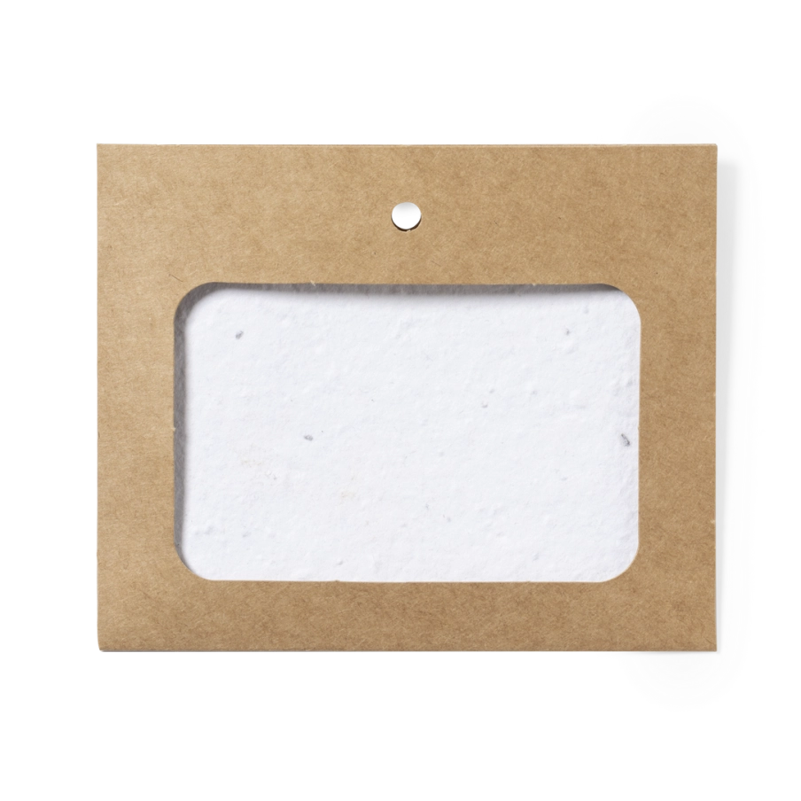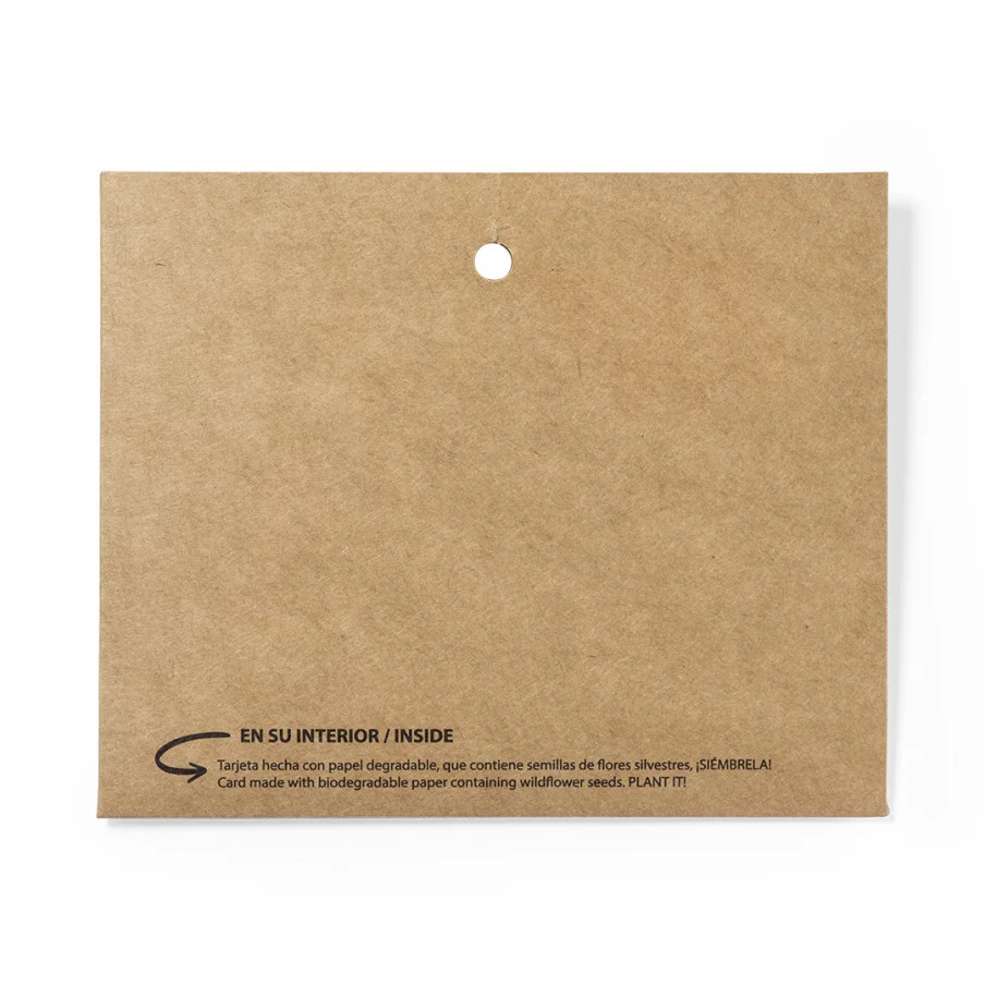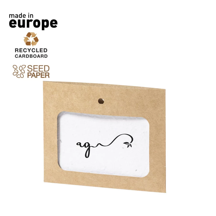 Découvrez notre badge identificateur en carton recyclé. Il comprend une carte avec des graines de fleurs sauvages, la transformant ainsi en papier plantable à la fin de sa vie utile.