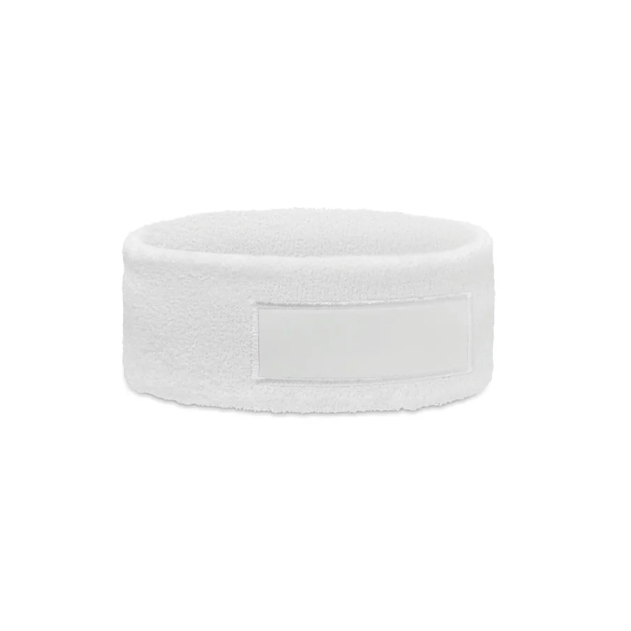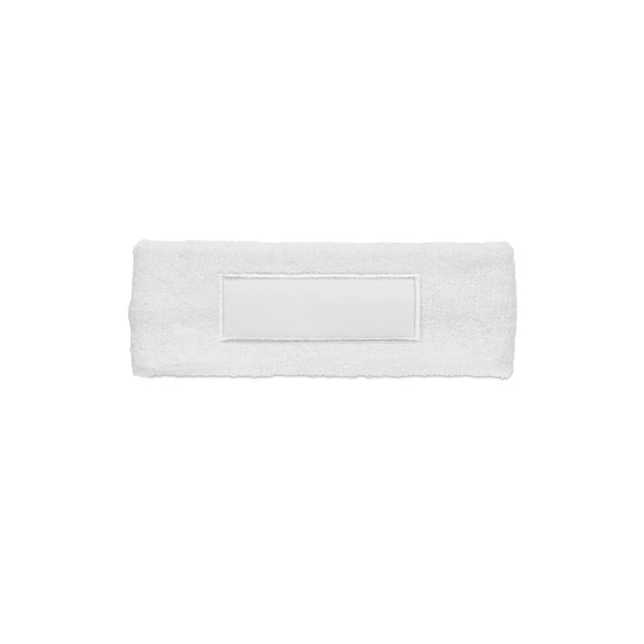 Ce bandeau de sport est fabriqué en polycoton (79 % coton, 13 % élasthanne, 8 % polyester). Il comporte un patch en coton prévu pour le marquage.