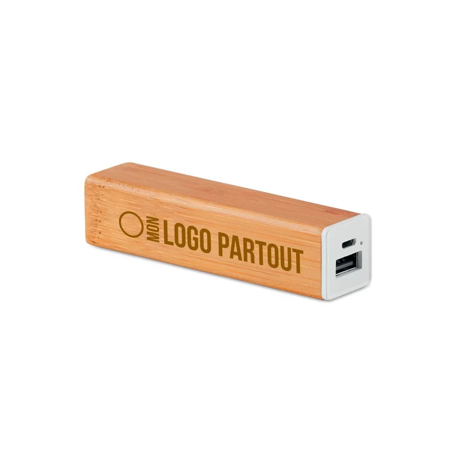 Apposez votre logo sur nos batteries de secours en bambou publicitaire.