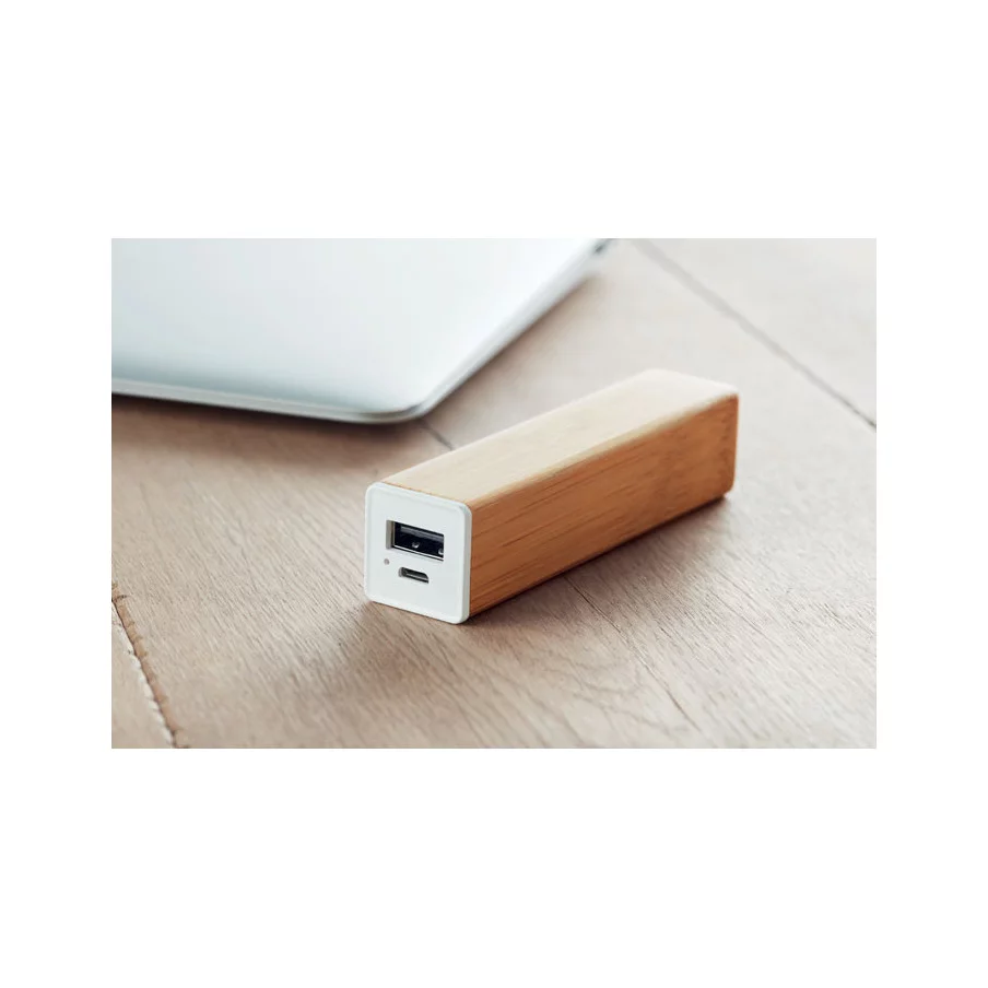 Rechargez en toute simplicité votre téléphone portable en cas de batterie faible avec notre power Bank en bambou 2200 mAh personnalisable. Pour toutes questions, demandez à nos spécialistes du goodies. Important : La bambou est un produit naturel et présente de légères variation de couleurs, de décoration et de tailles d’un exemplaire à l’autre.