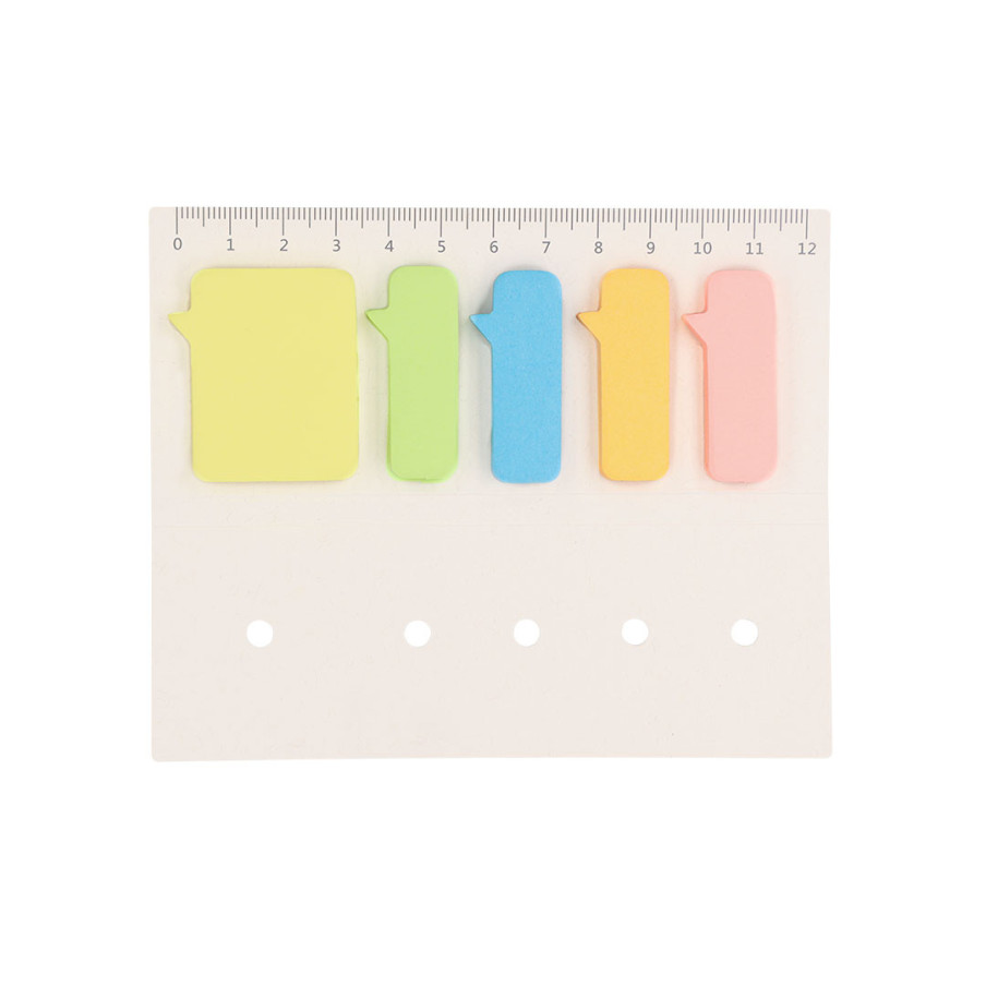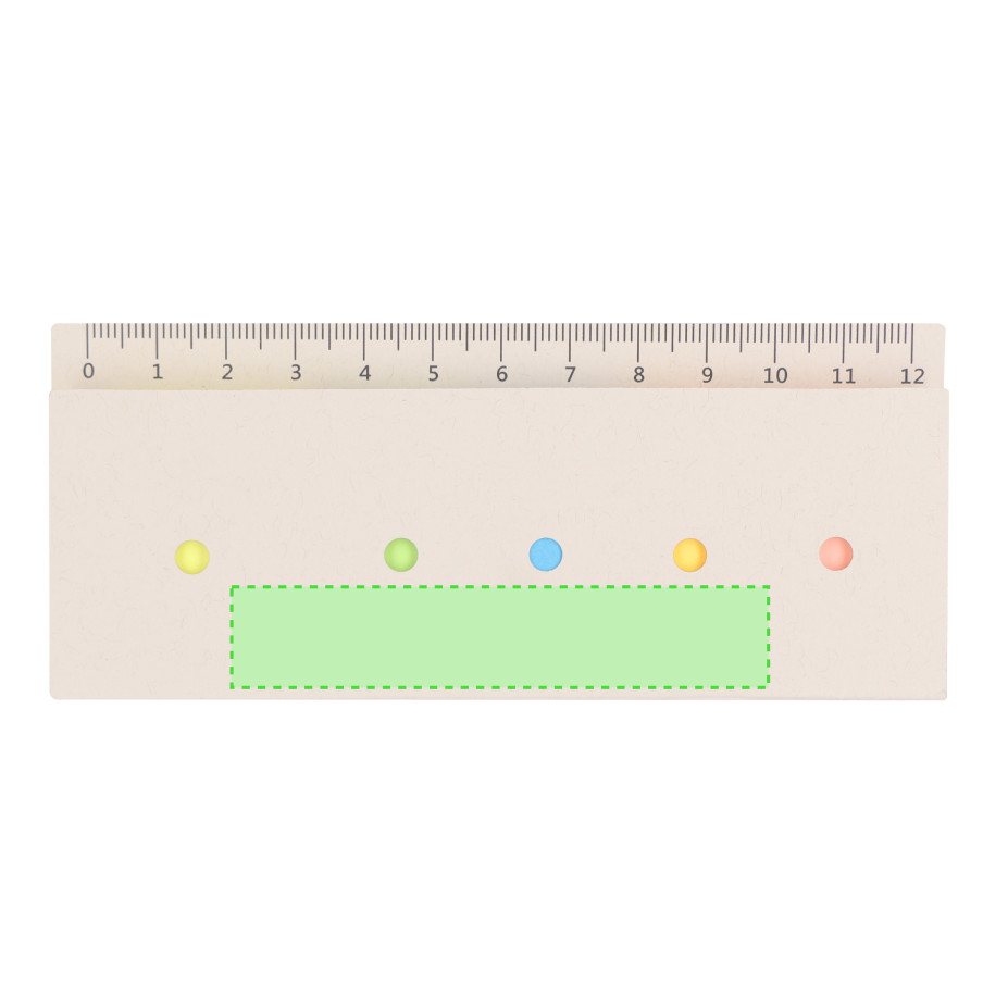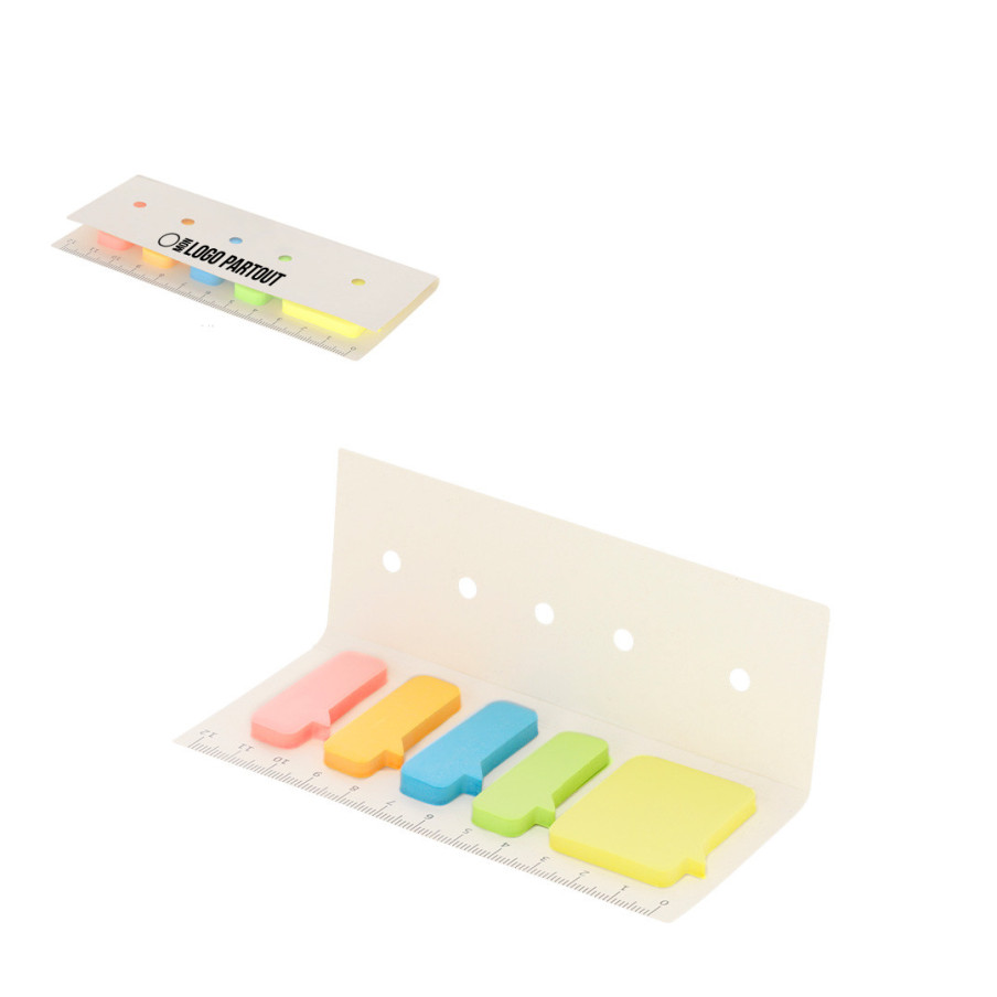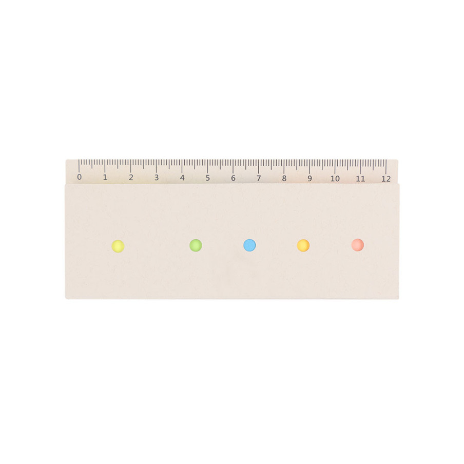 Ce bloc-notes est fabriqué en carton de lait recyclé. Il comprend 50 notes adhésives moyennes, 200 mini-notes à motif et une règle intégrée de 12 cm.