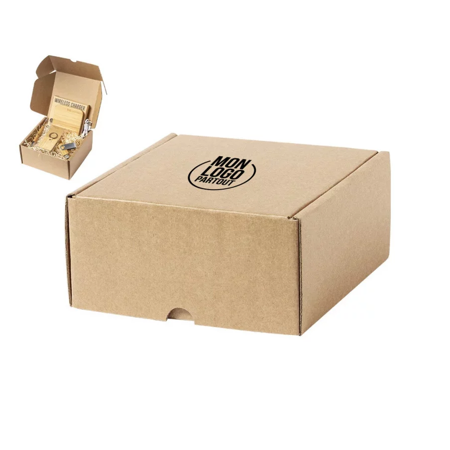 Avec son format taille S, la boîte Ciril est idéale pour expédier de petits articles promotionnels, préparer des coffrets cadeaux compacts ou emballer des objets destinés à vos clients et collaborateurs. Personnalisable avec votre logo, elle met en valeur vos expéditions tout en associant votre marque à une démarche plus durable.