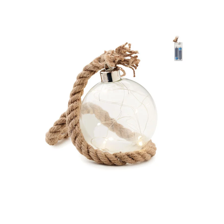 La boule de Noël en verre Baubli dispose d'une mini guirlande lumineuse de 8 Led jaune chaud. Les deux piles AA ne sont pas comprises.