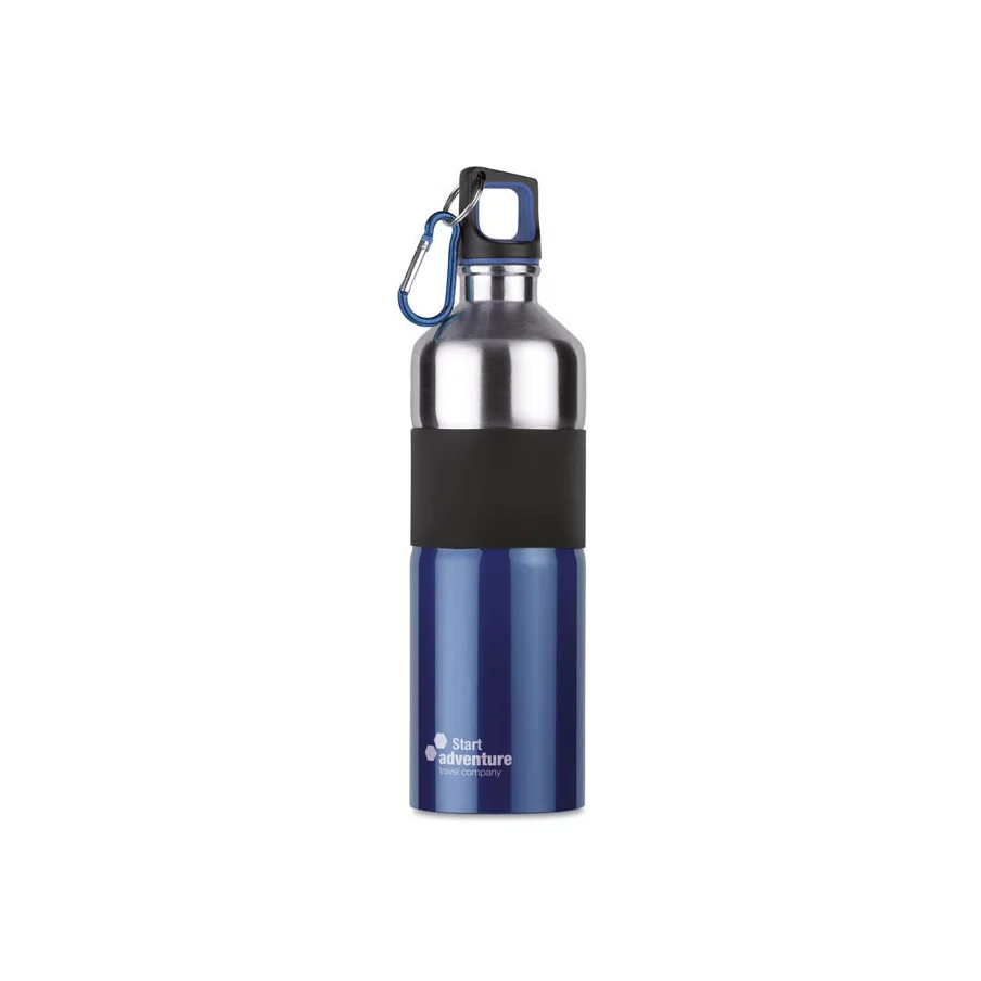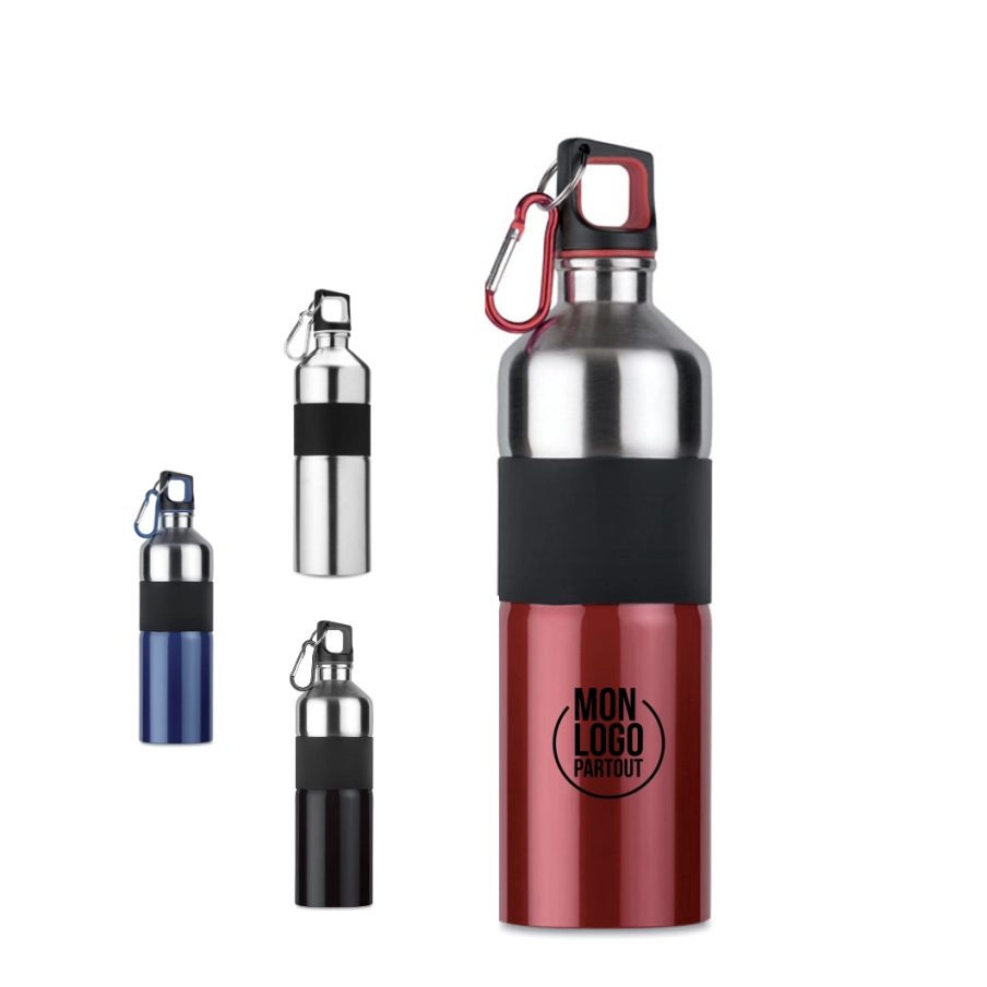 Craquez pour une bouteille publicitaire simple paroi en acier inoxydable bicolore dotée d'un grip caoutchouc idéal pour une bonne prise en mail. D'une contenance de 750 ml, elle répondra parfaitement à vos besoins lors d'un déplacement ou une randonnée. Attention, le mousqueton n'est pas fait pour l'escalade.