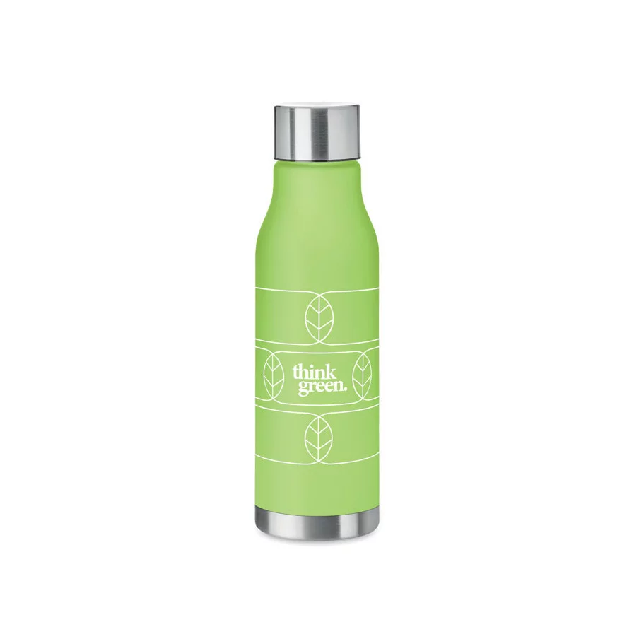 Craquez pour notre bouteille personnalisable en RPET et sa finition caoutchoutée et acier inoxydable. Sans BPA et anti fuite, cette bouteille répondra parfaitement à vos besoins.