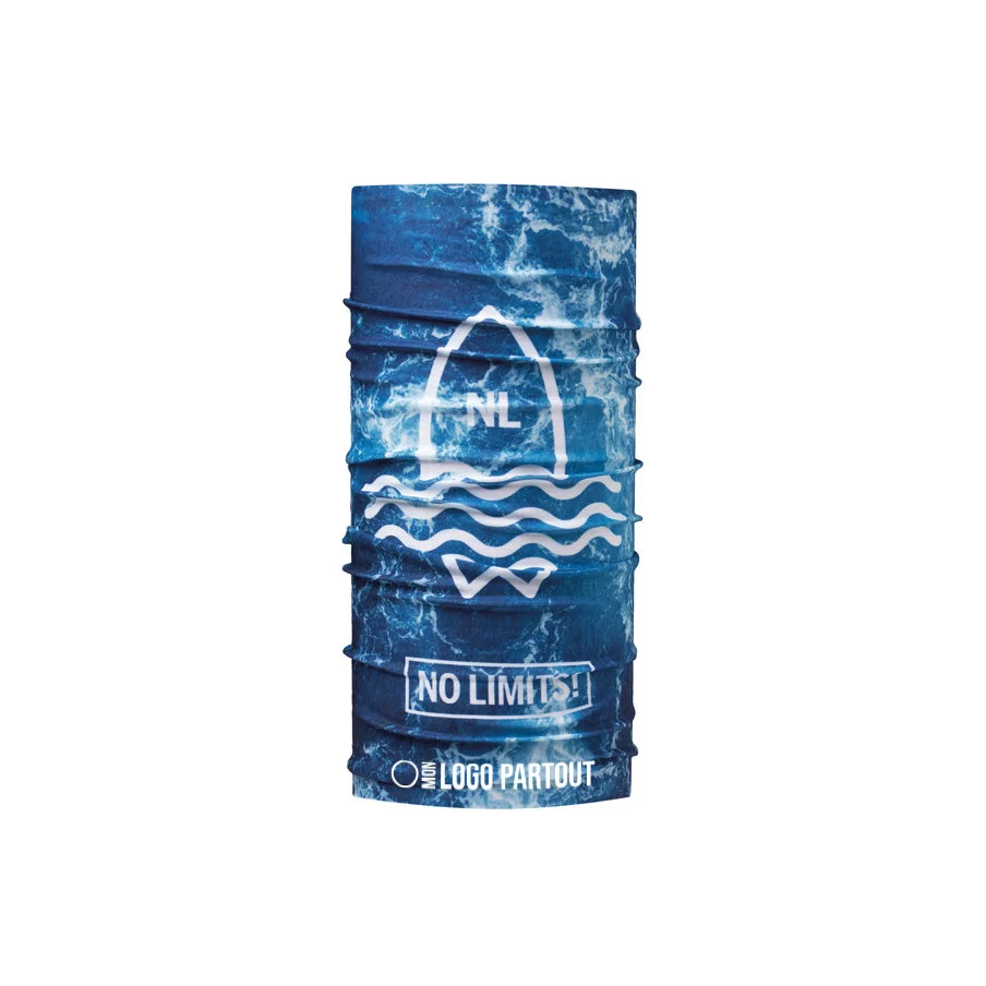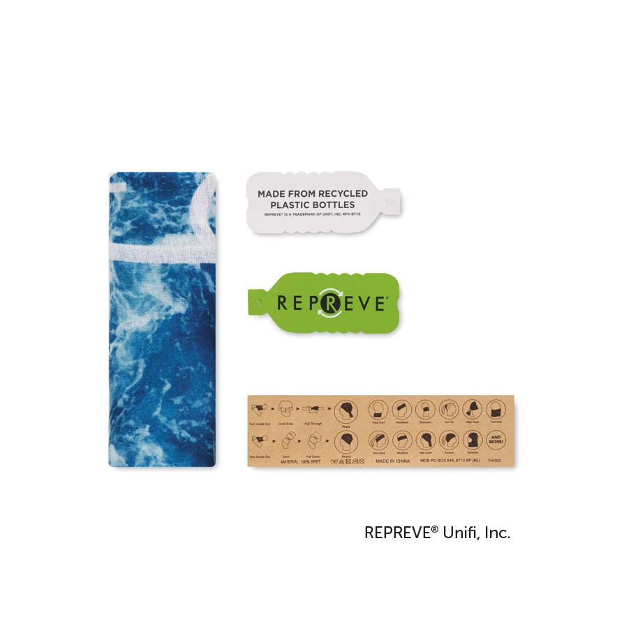 Ce foulard multifonctions est fabriqué en polyester recyclé REPREVE® (130 g/m²) et mesure 50x25 cm. Il est entièrement personnalisable en sublimation.