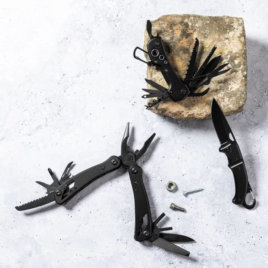 Ce couteau est doté d'une lame en acier inoxydable avec une finition noire et d'un manche en aluminium résistant assorti. Il est pratique grâce à son mousqueton intégré dans la poignée et son verrou de sécurité. Grâce à son cran d'arrêt, il permet une ouverture facile et sécurisée. Présenté dans une boîte design noire individuelle, il est prêt à être offert ou utilisé. Sa combinaison d'aluminium et d'acier inoxydable en fait un outil robuste et fiable.