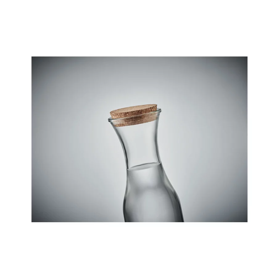Craquez pour notre sublime carafe en verre recyclé avec son couvercle en liège naturel. Capacité : 1L