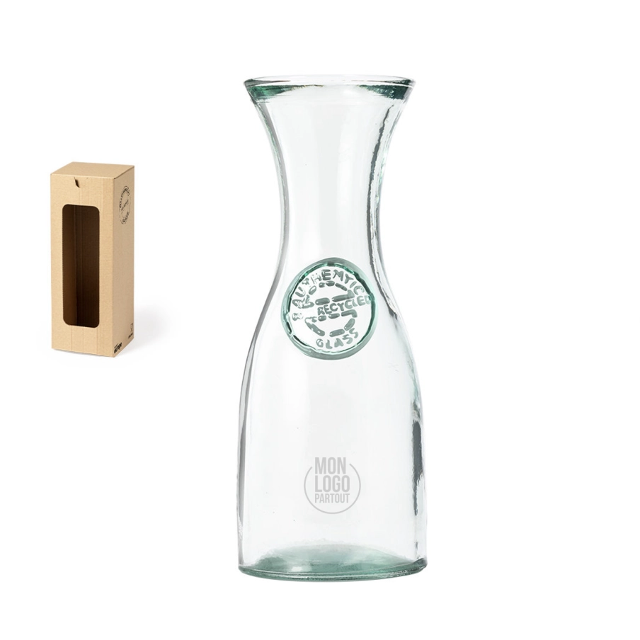 Fabriquée en Europe et en verre recyclé, personnalisez à votre image notre carafe publicitaire d'une contenance de 800 ml. Présenté dans une boîte en carton recyclé avec fenêtre.