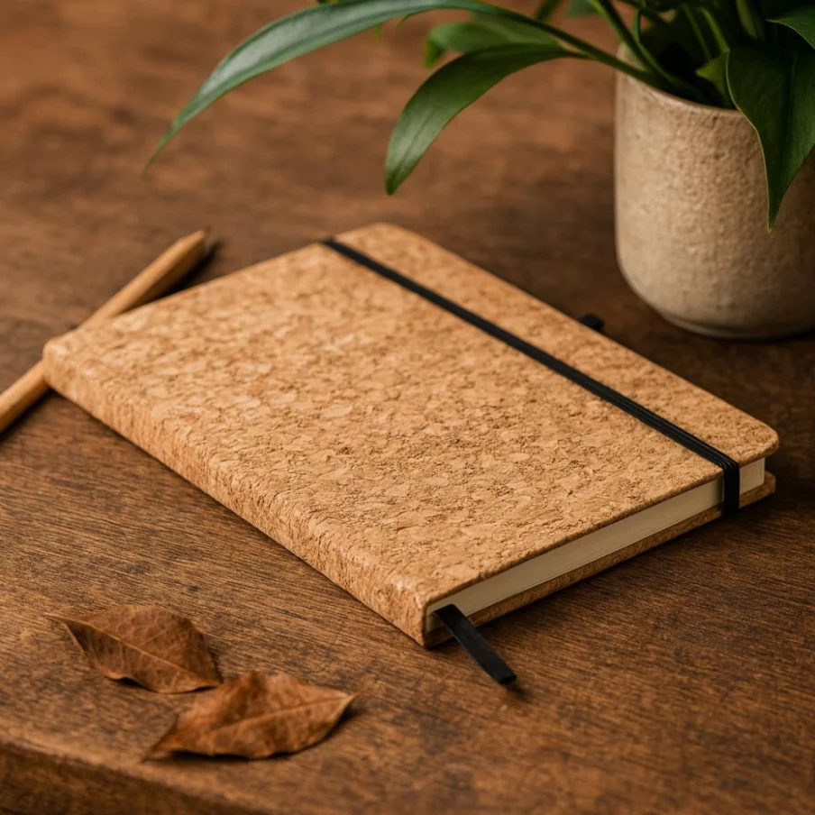 Goodies écologique et durable, craquez pour notre carnet A5 et sa couverture en liège. Doté de 96 pages lignées en papier recyclé, d’un passant pour stylo et d’une bande élastique, ce carnet original se démarque par sa matière naturelle et écologique. Personnalisable à votre image, faites le choix d’une matière aux multiples avantages.