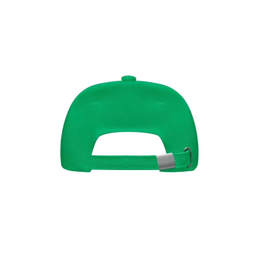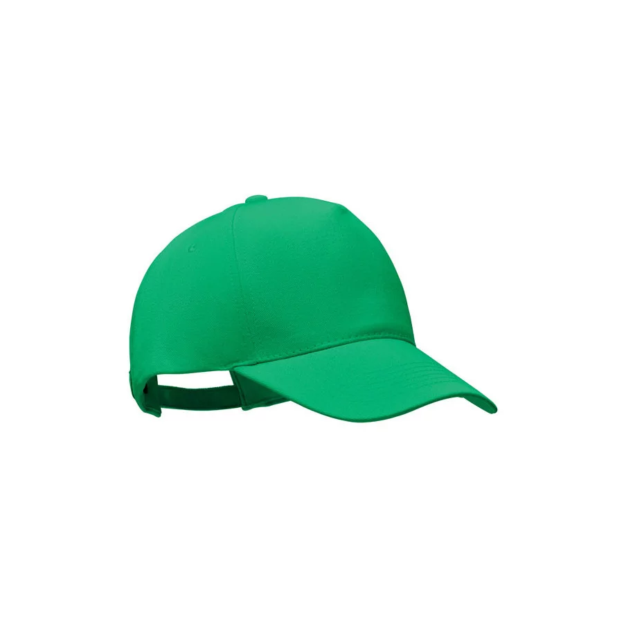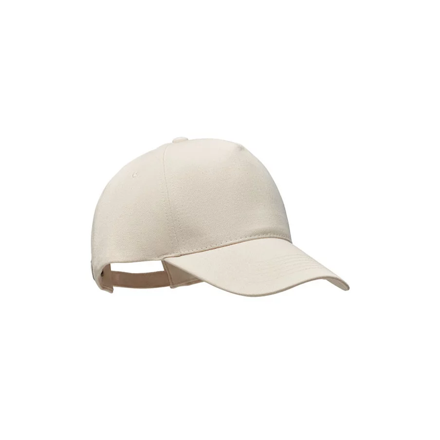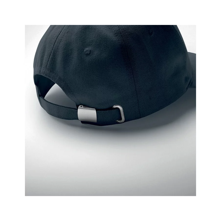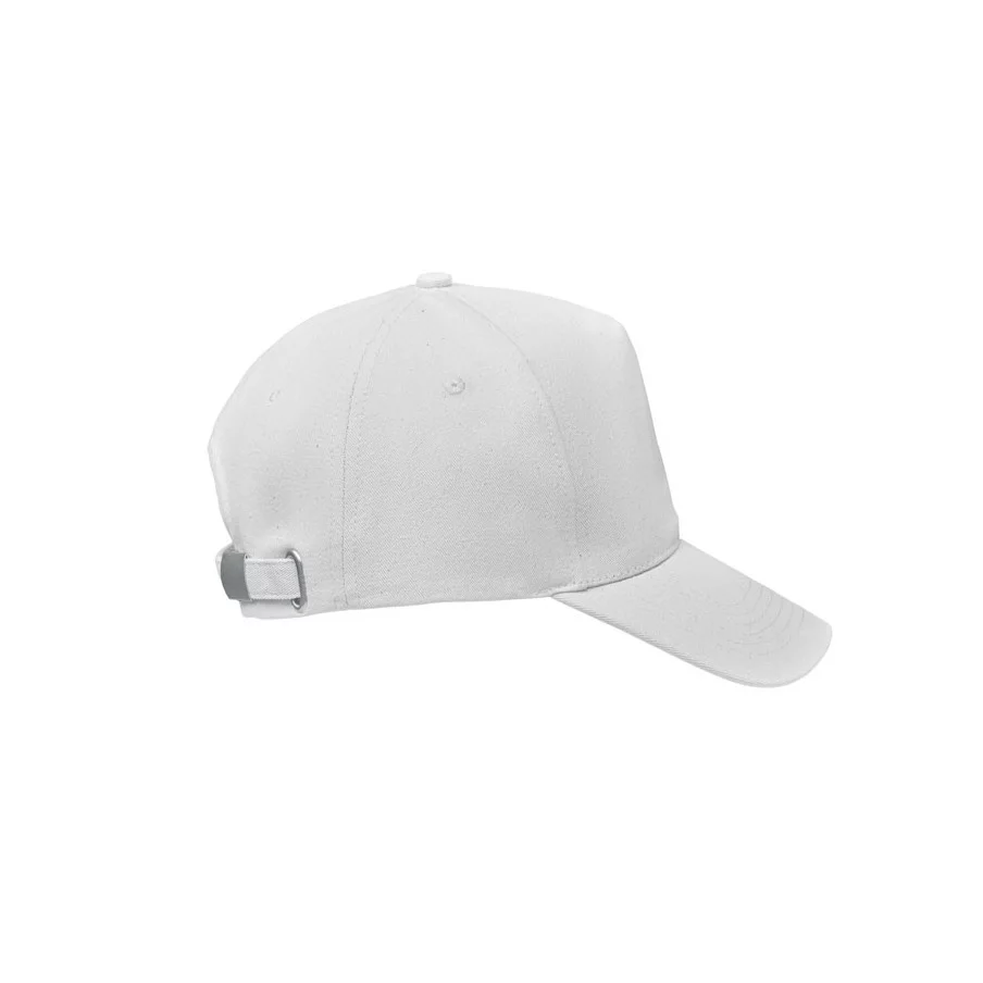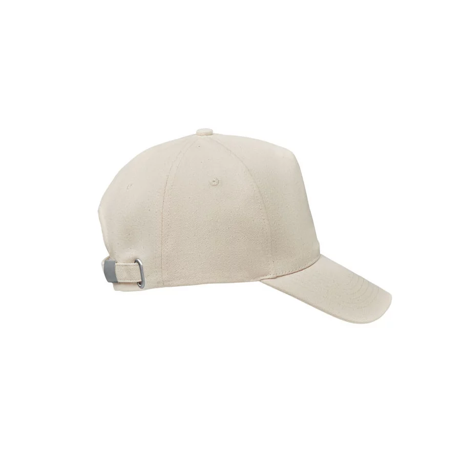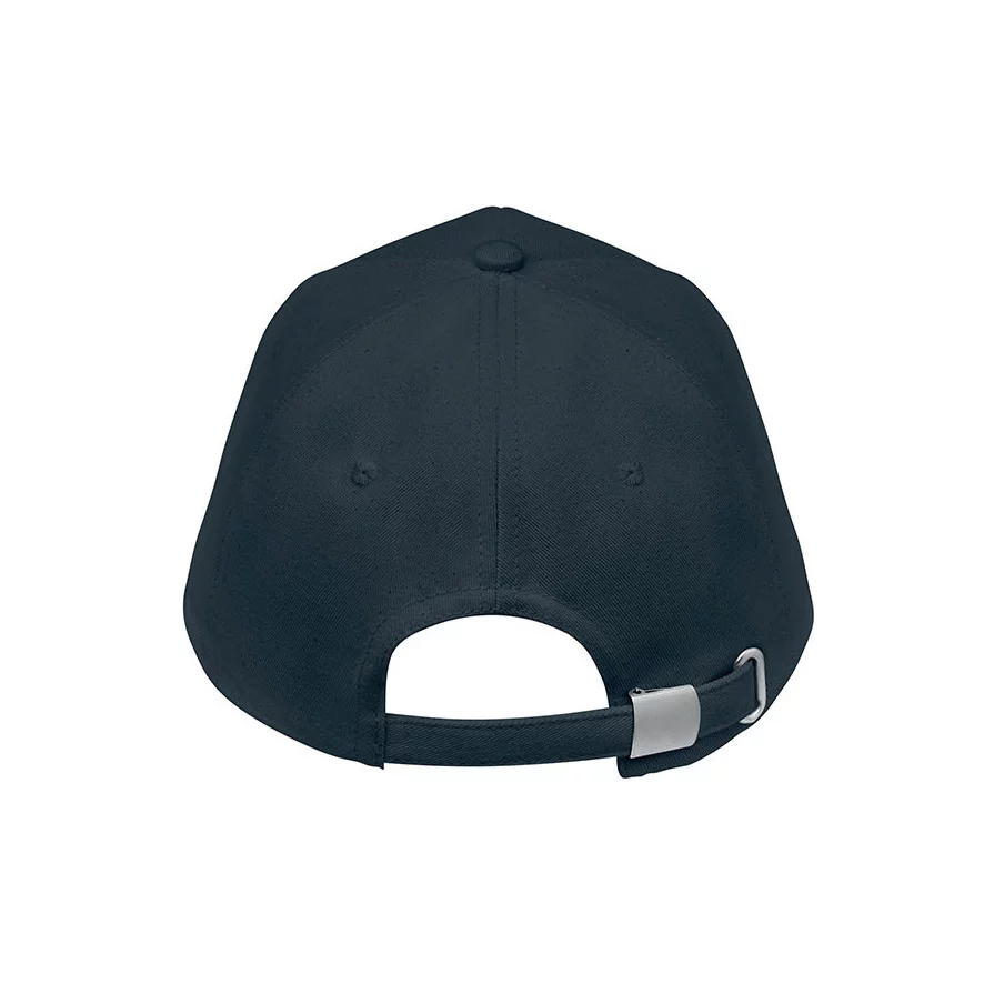 Casquette de baseball personnalisable à 5 panneaux en coton organique brossé. Fermeture à boucle arrière réglable en métal.