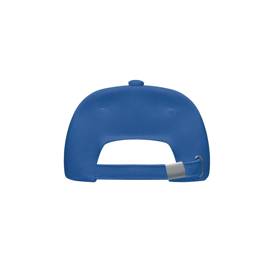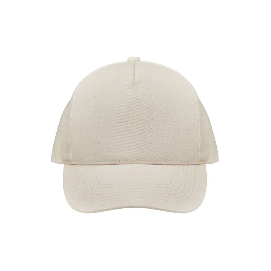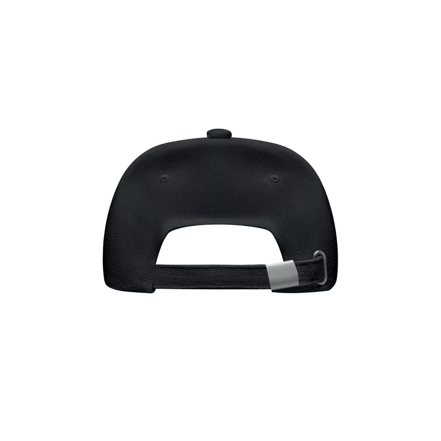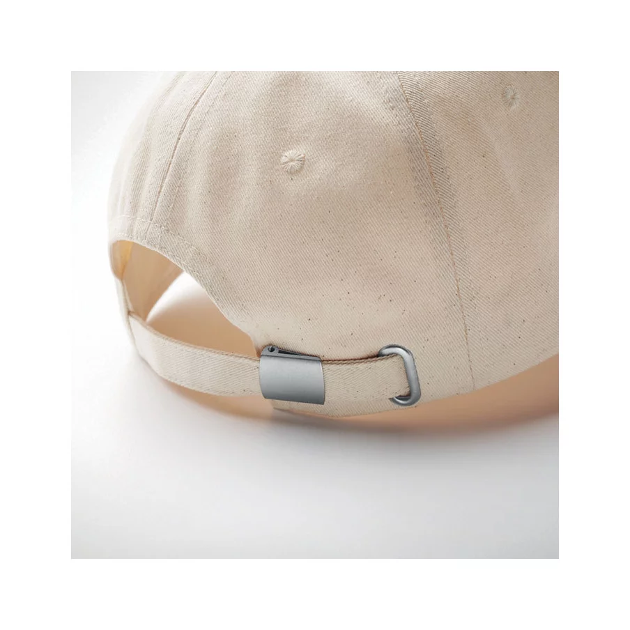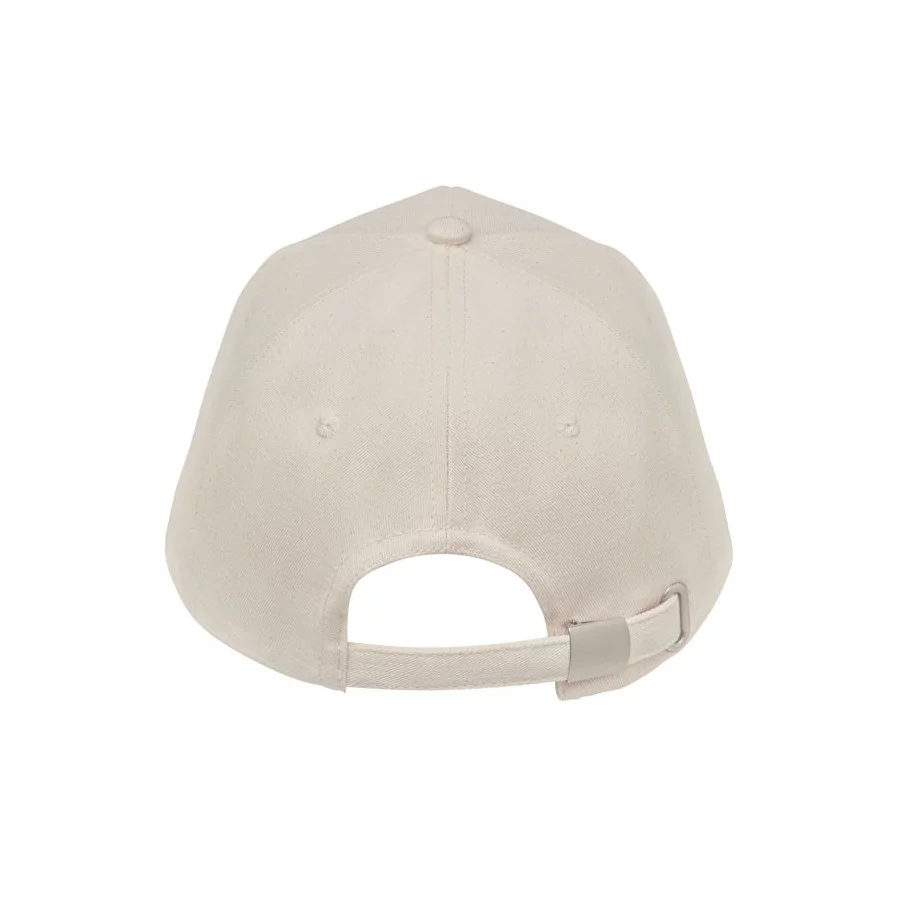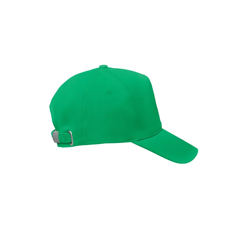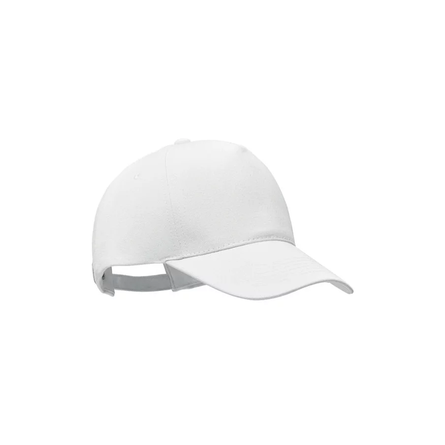 Casquette de baseball personnalisable à 5 panneaux en coton organique brossé. Fermeture à boucle arrière réglable en métal.