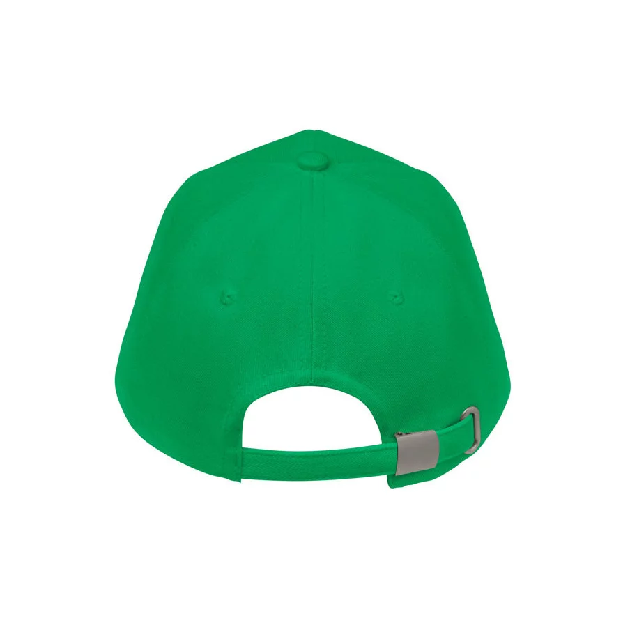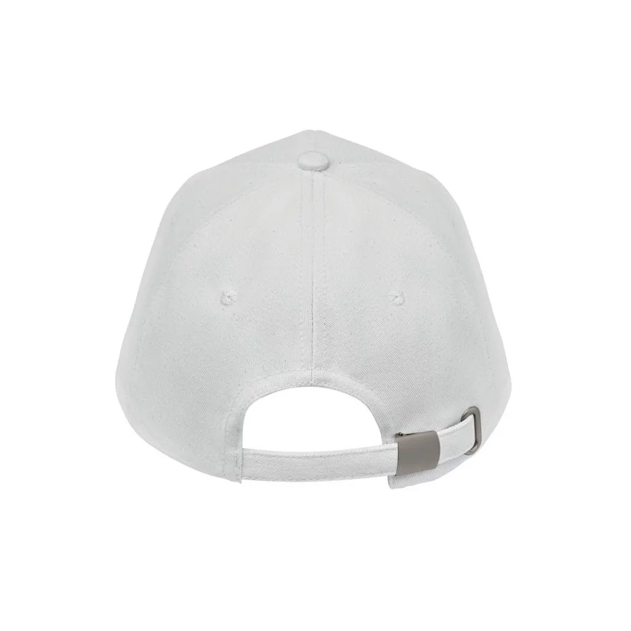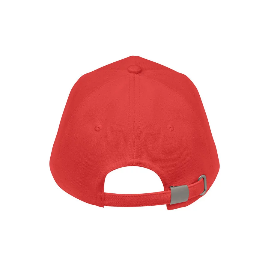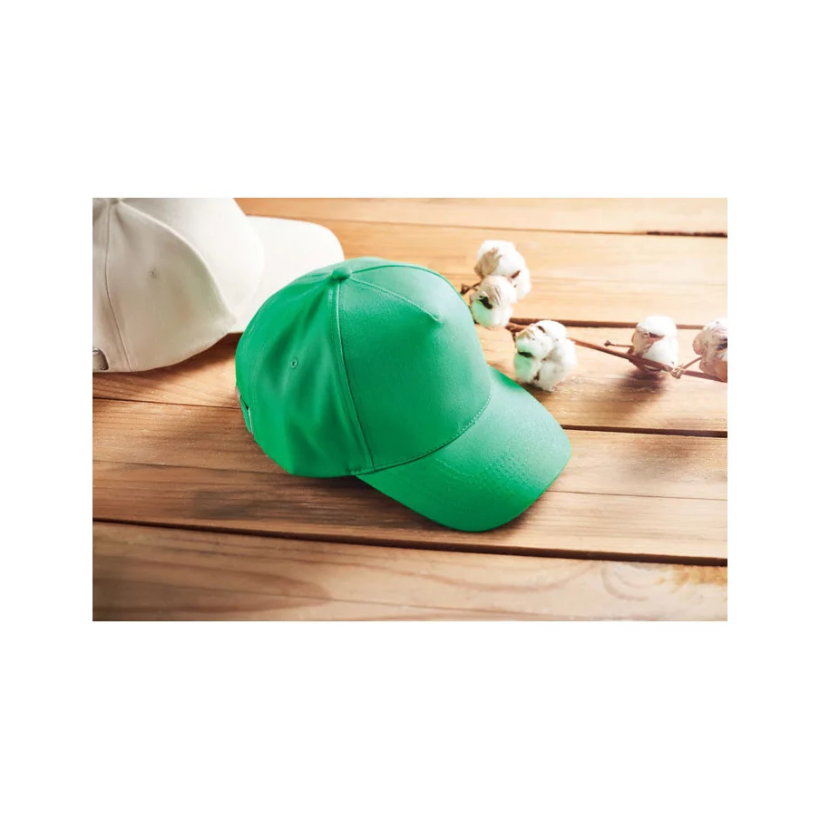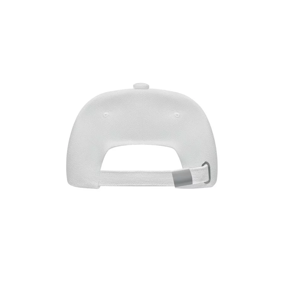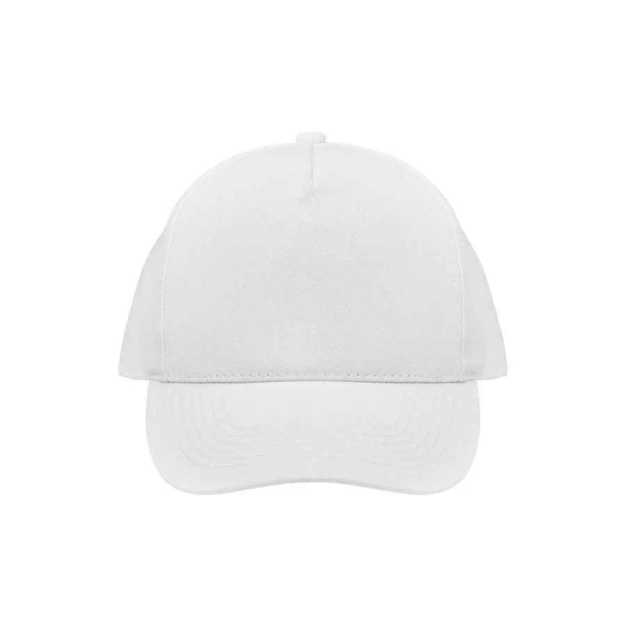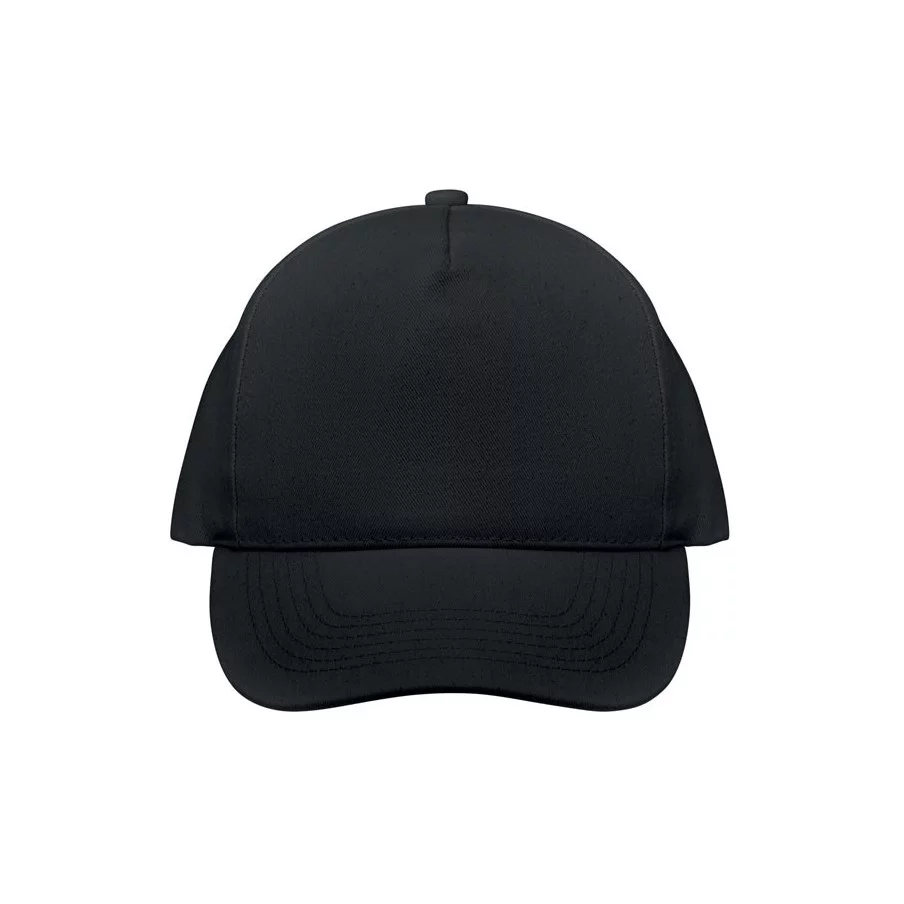 Casquette de baseball personnalisable à 5 panneaux en coton organique brossé. Fermeture à boucle arrière réglable en métal.