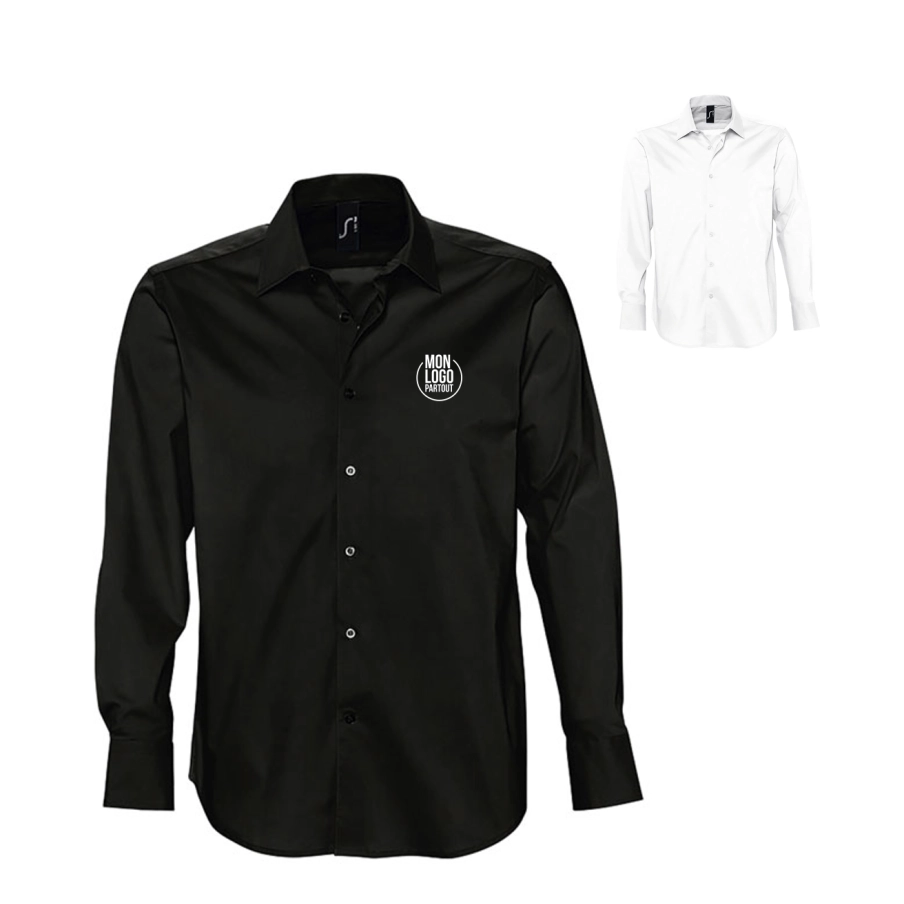 Réalisée dans un coton élasthanne et avec sa coupe ajustée, elle apporte une tenue et un confort. Produit très tendance, cette chemise pour homme personnalisable est idéale pour le secteur de l'événementiel.