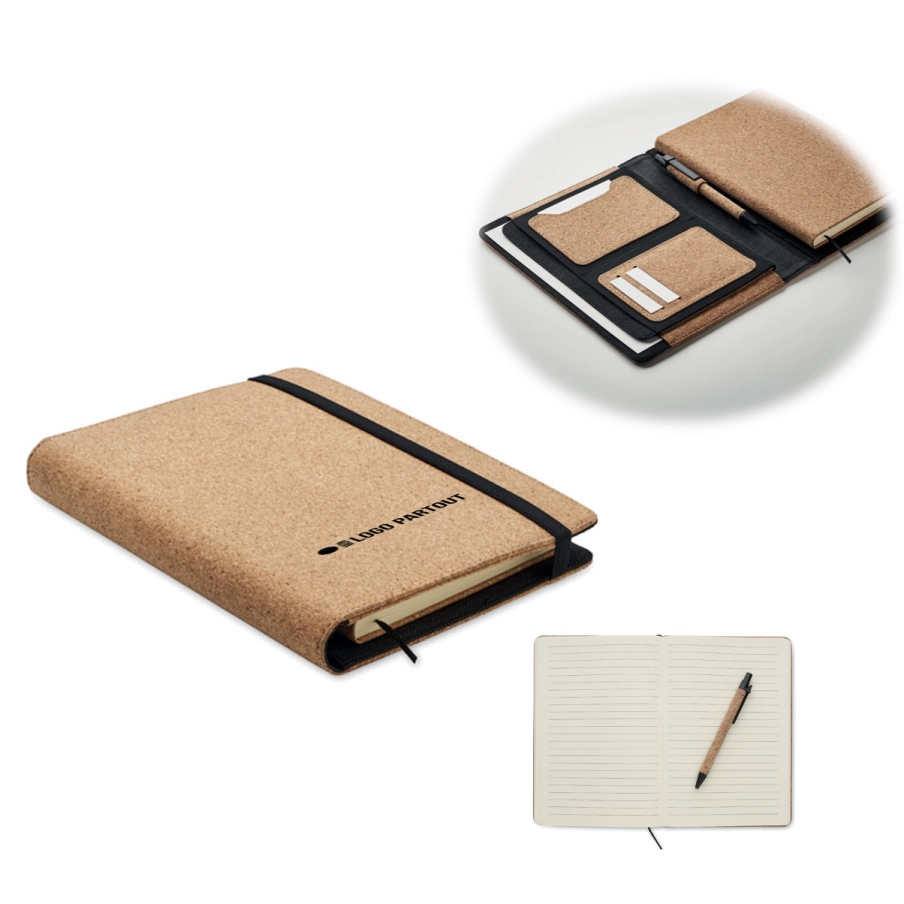 Personnalisation de votre Conférencier A5 en liège avec carnet de note Origin publicitaire