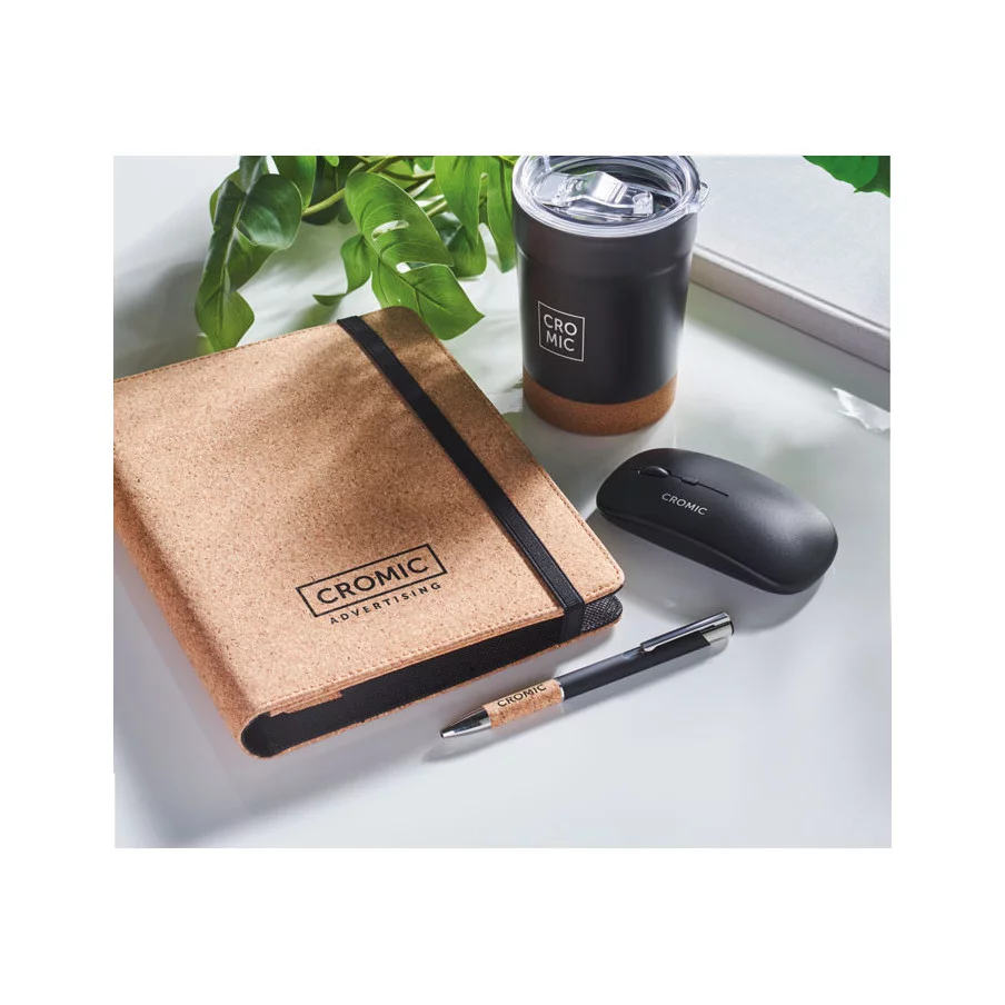 Transformez ce conférencier en un objet publicitaire élégant. Personnalisez la couverture en liège avec votre logo pour une visibilité maximale. Offrez à vos clients un cadeau promotionnel qui allie fonctionnalité, style et responsabilité environnementale. Que ce soit pour des cadeaux d'entreprise, des séminaires, ou des événements spéciaux, notre conférencier A5 en liège est le choix idéal pour mettre en valeur votre marque avec élégance.