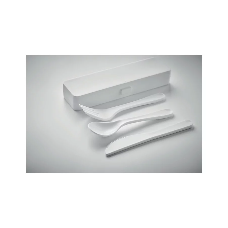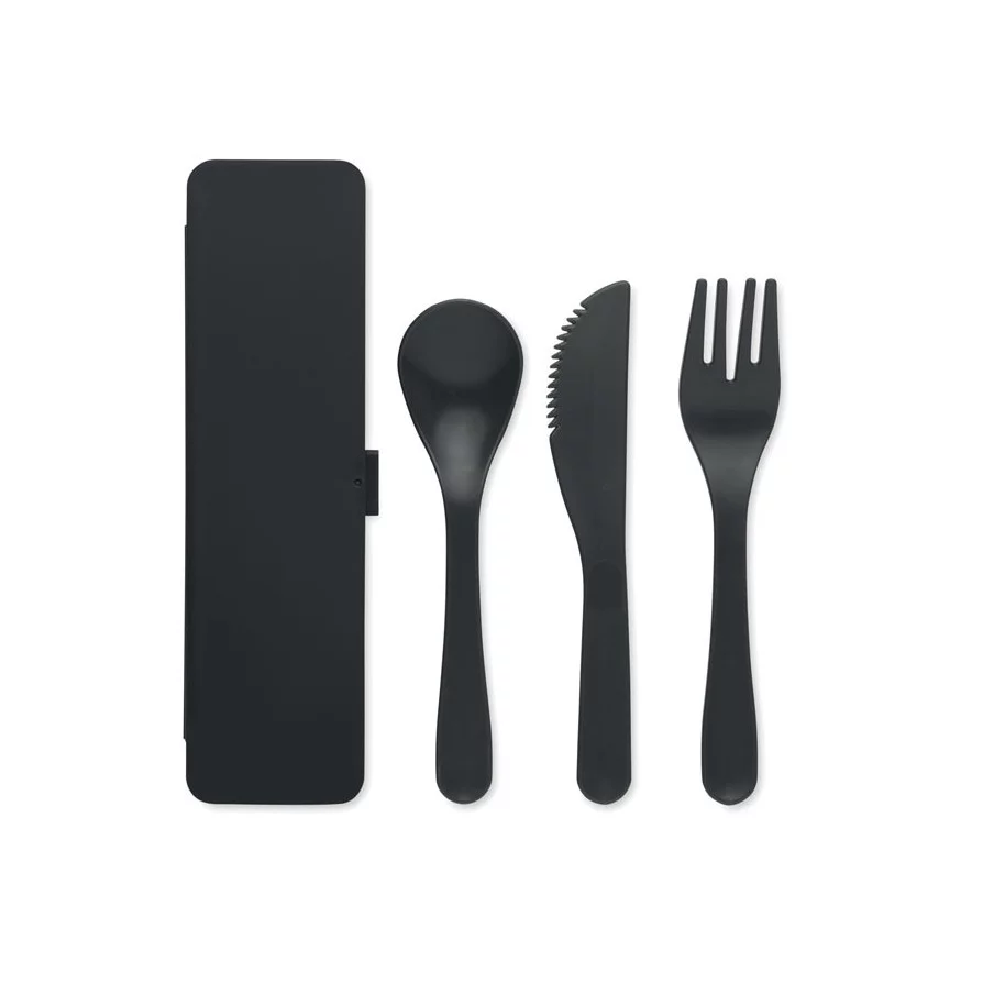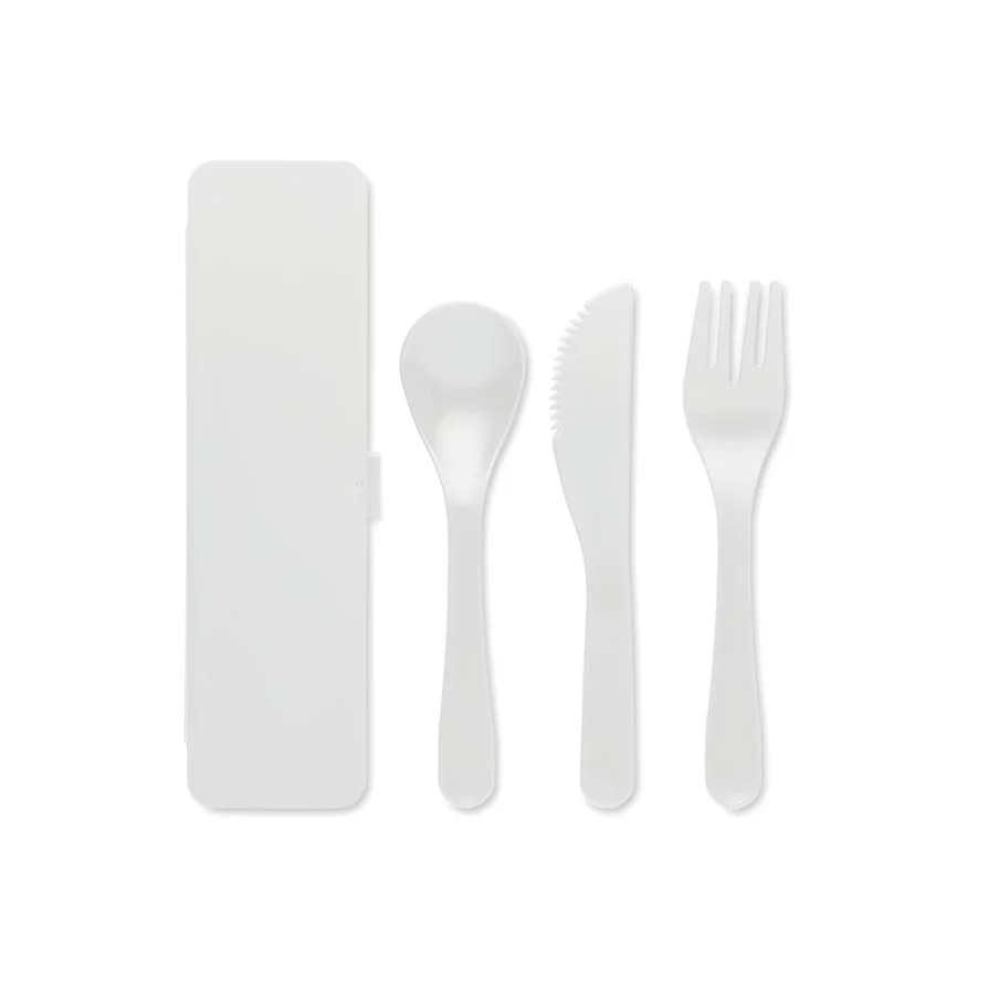Nos experts du goodies vous présentent un sublime set de couverts portable réutilisable et son étui. Comprend une cuillère, une fourchette et un couteau. Les produits réutilisables contribuent à la réduction des déchets, pensez-y !