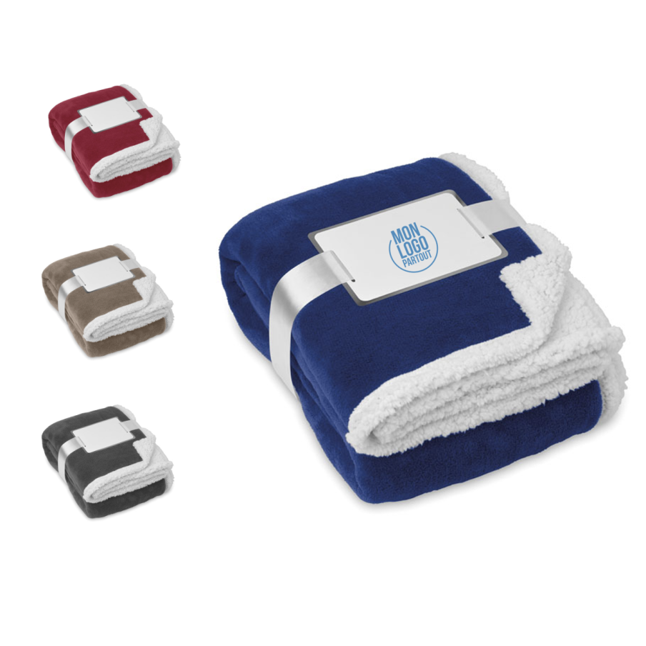 La couverture polaire publicitaire Zermatt est conçu en polaire de 200 gr/m2 avec une doublure en polyester sherpa de 220 gr/m2.