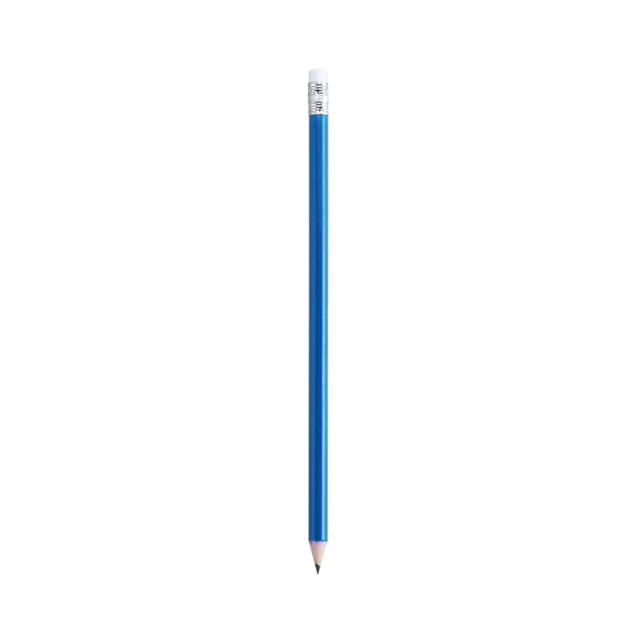 Crayon en bois personnalisable finition brillante et gomme blanche. Un accessoire original proposé dans une large gamme de couleurs. Mine noire et pointe taillée.