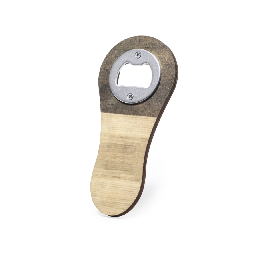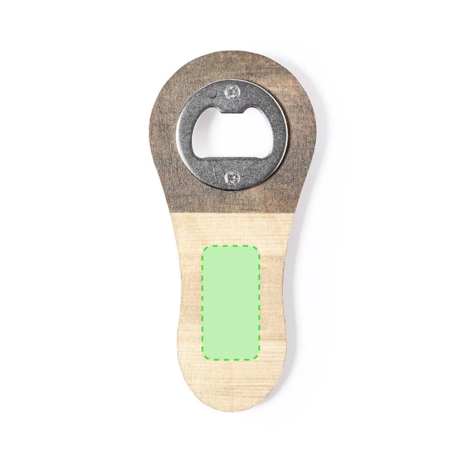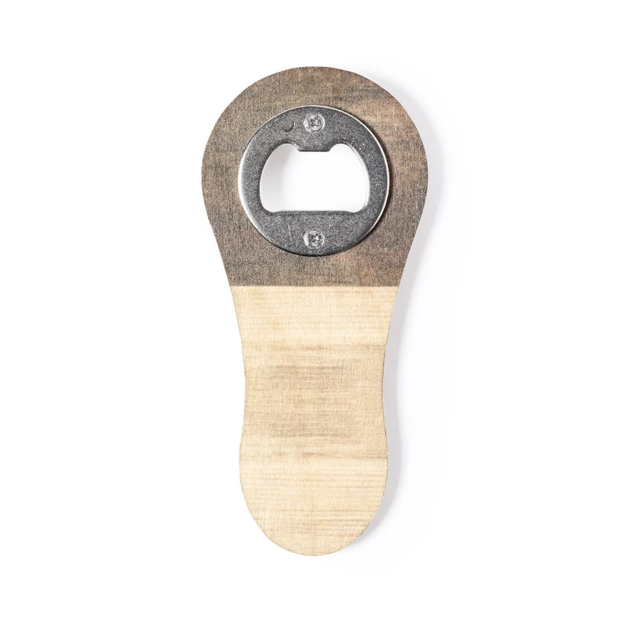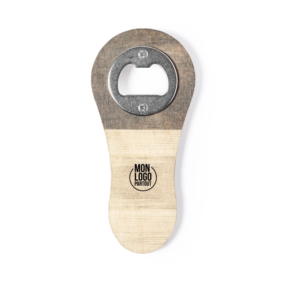 Personnalisez à vos couleurs notre décapsuleur promotionnel en bois. De fabrication européenne, il dispose d'un aimant qui lui permet d'être posé sur votre frigo.