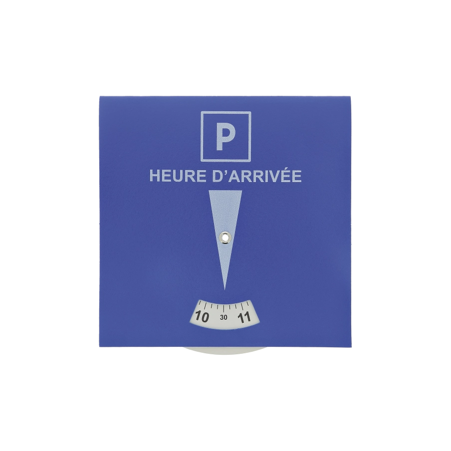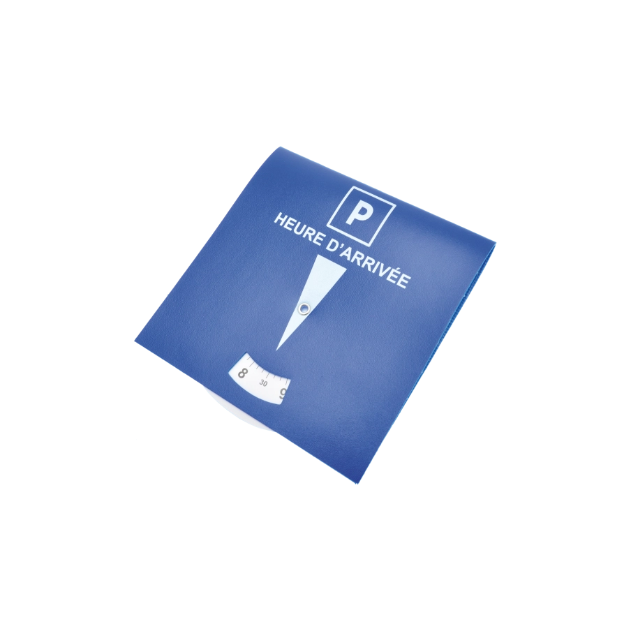Ce disque de stationnement en PVC bleu mesure 15x15 cm. Il comporte un texte pré-imprimé sur le devant et trois côtés ouverts.