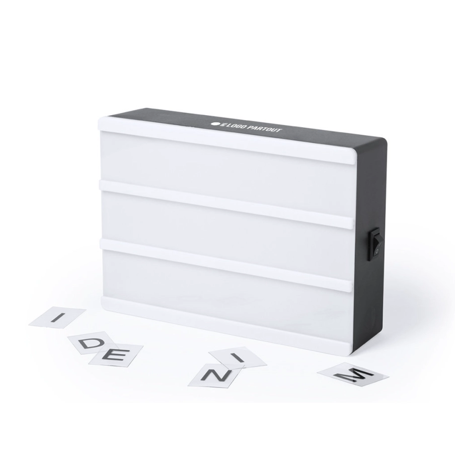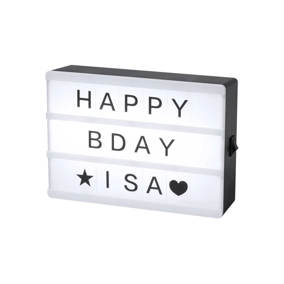 L'écran lumineux personnalisé Cinemax est un accessoire d'intérieur incontournable. La lightbox publicitaire comprend le box avec les lumières LED, les 82 lettres et caractères. Cependant les piles ne sont pas incluses.