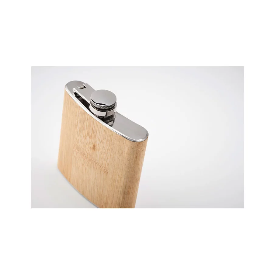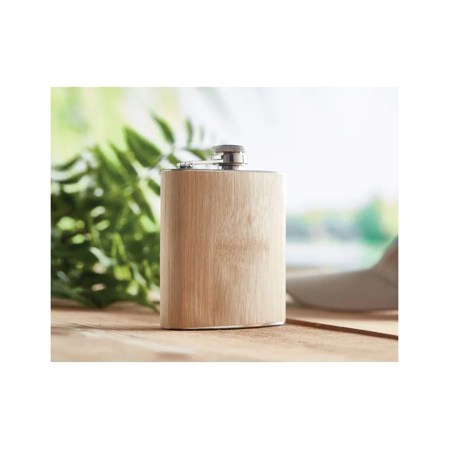 Découvrez une flasque originale d'une capacité de 175 ml, personnalisable à l'image de votre société. Avec un design durable et moderne, cette flasque se démarque de ses modèles concurrents par sa finition en bambou naturel. Apportant chaleur et modernité au produit, cette flasque en bambou surprendra sans aucun doute vos clients.