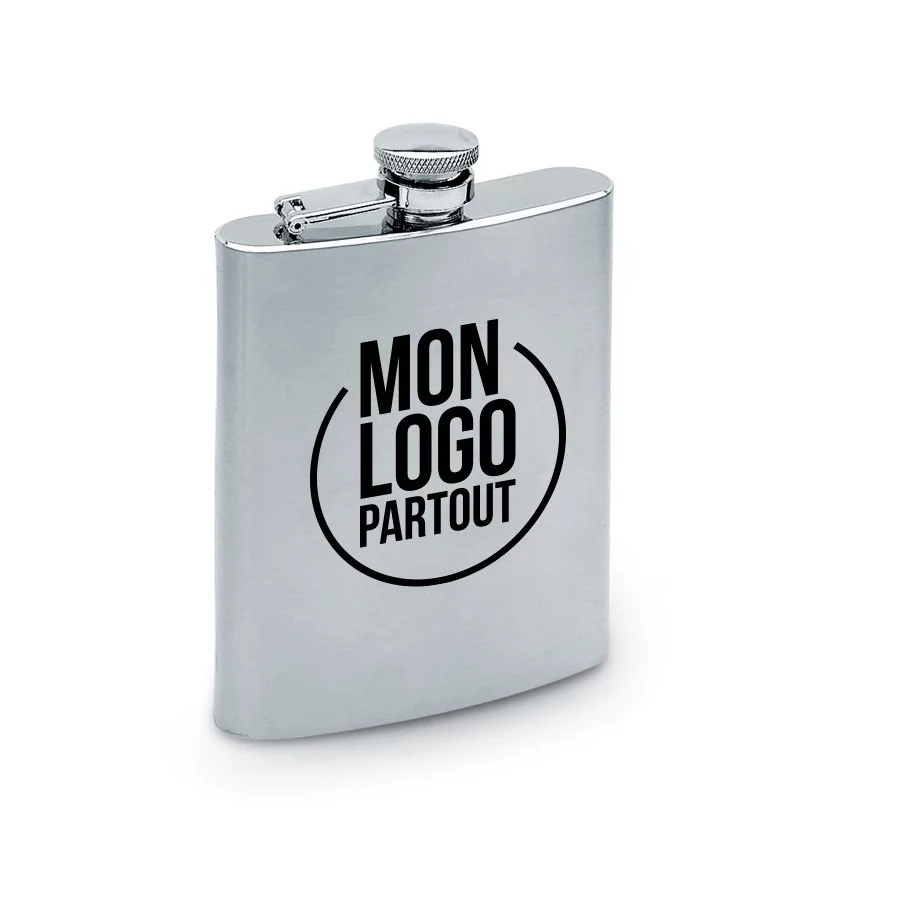 Cette flasque personnalisée de grande taille pourra contenir 200 ml du liquide de votre choix. Réalisé en inox ce goodies publicitaire sera le cadeau d’affaire premium idéal pour vos meilleurs clients.