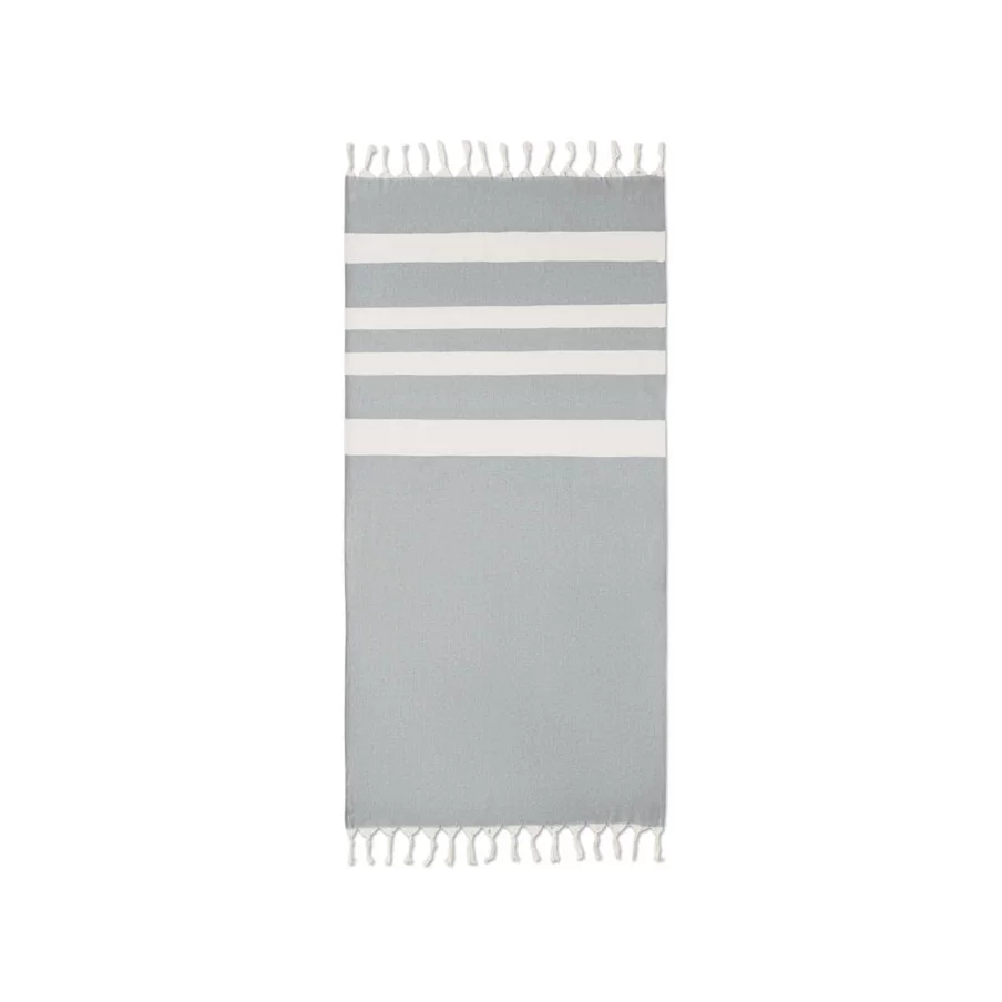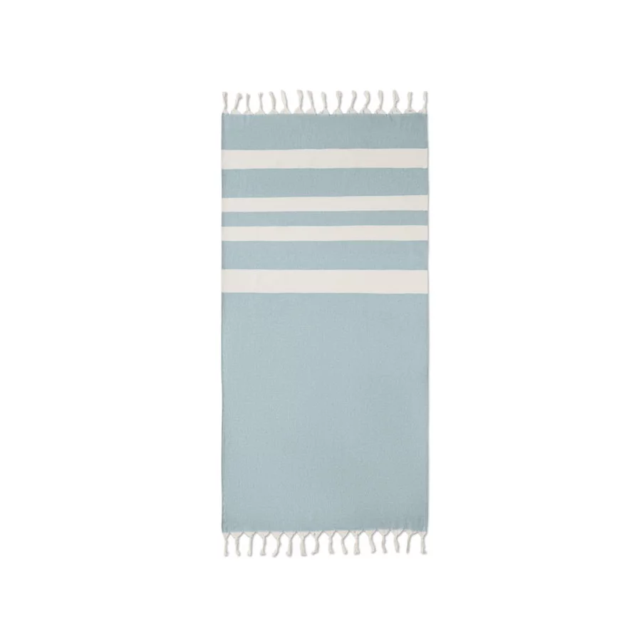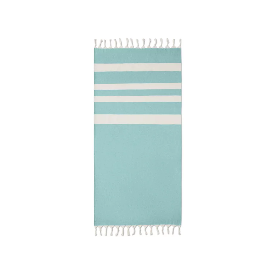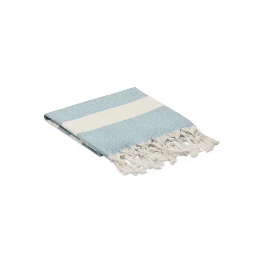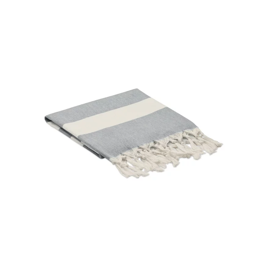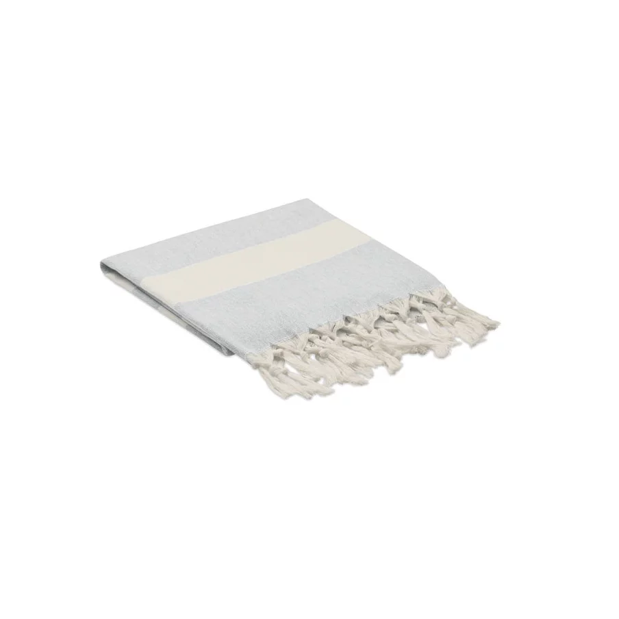 La fouta personnalisée de plage publicitaire Agoura est fabriquée en tissus recyclés.