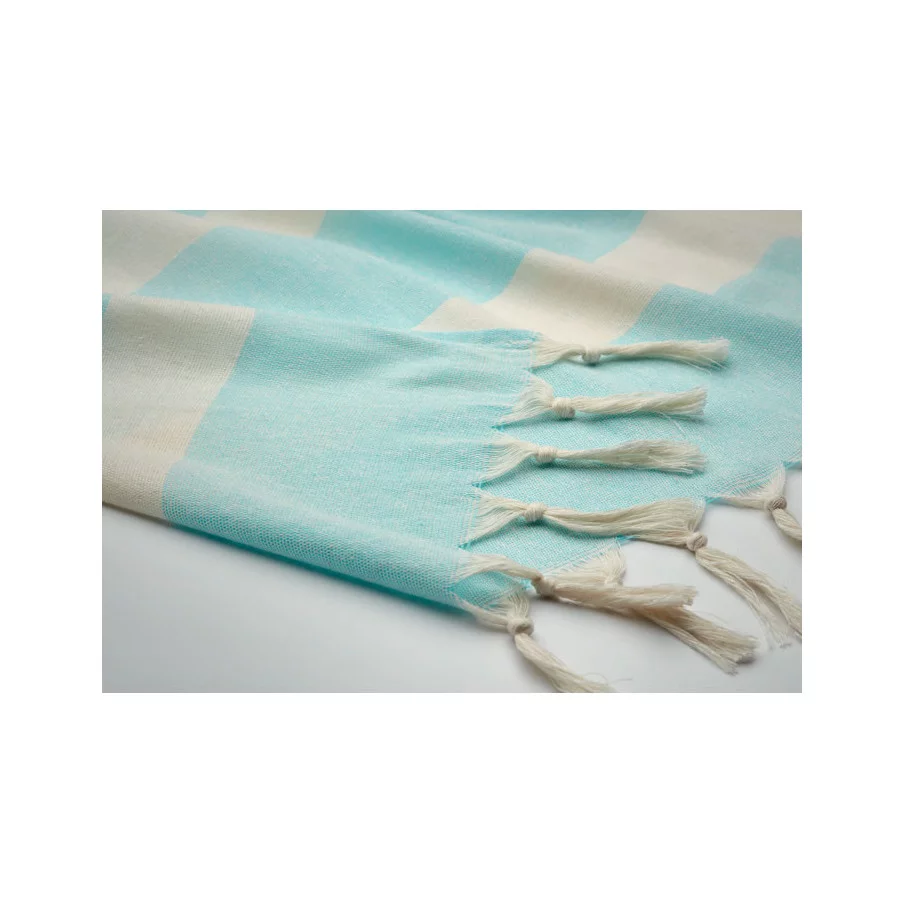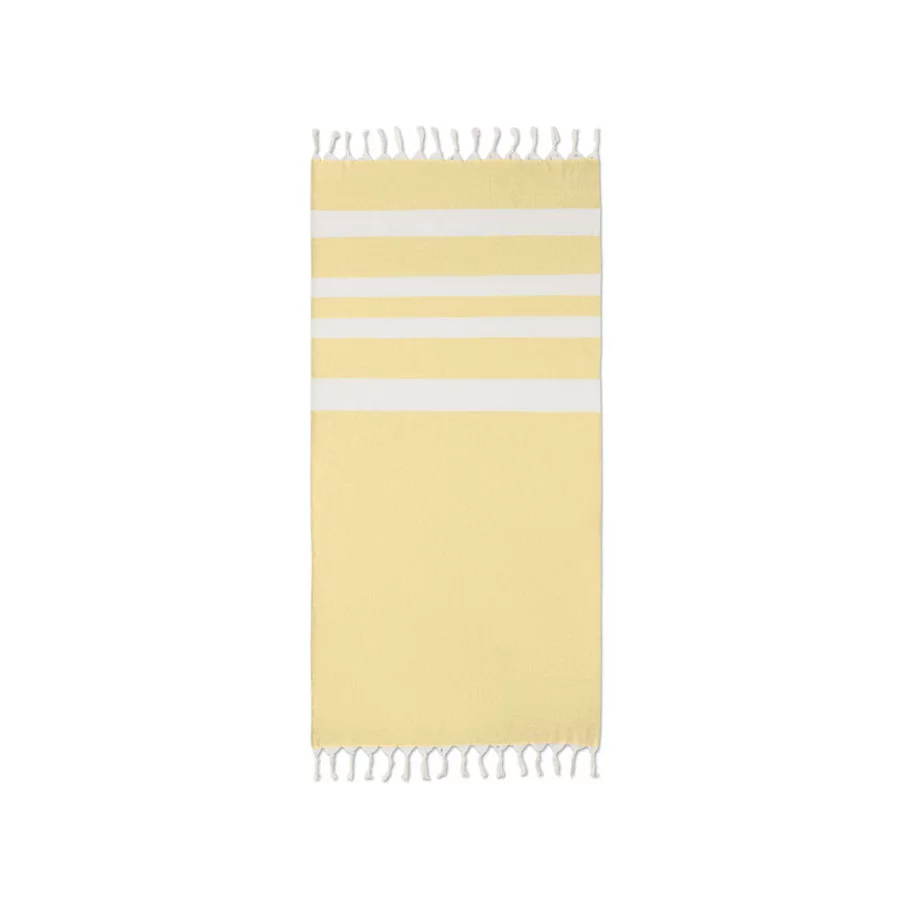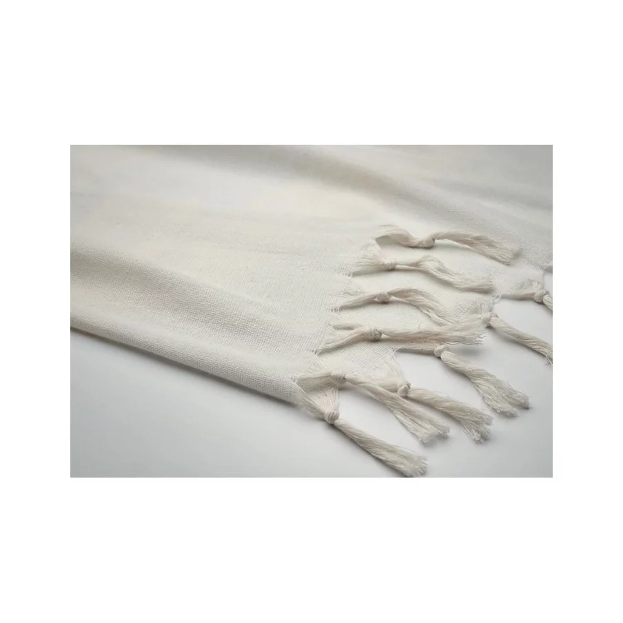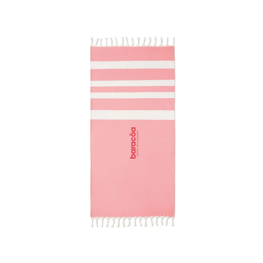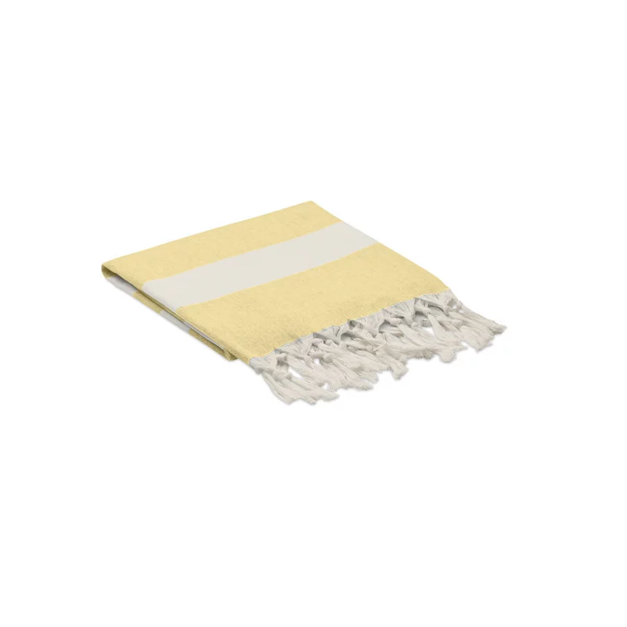 La fouta personnalisée de plage publicitaire Agoura est fabriquée en tissus recyclés.