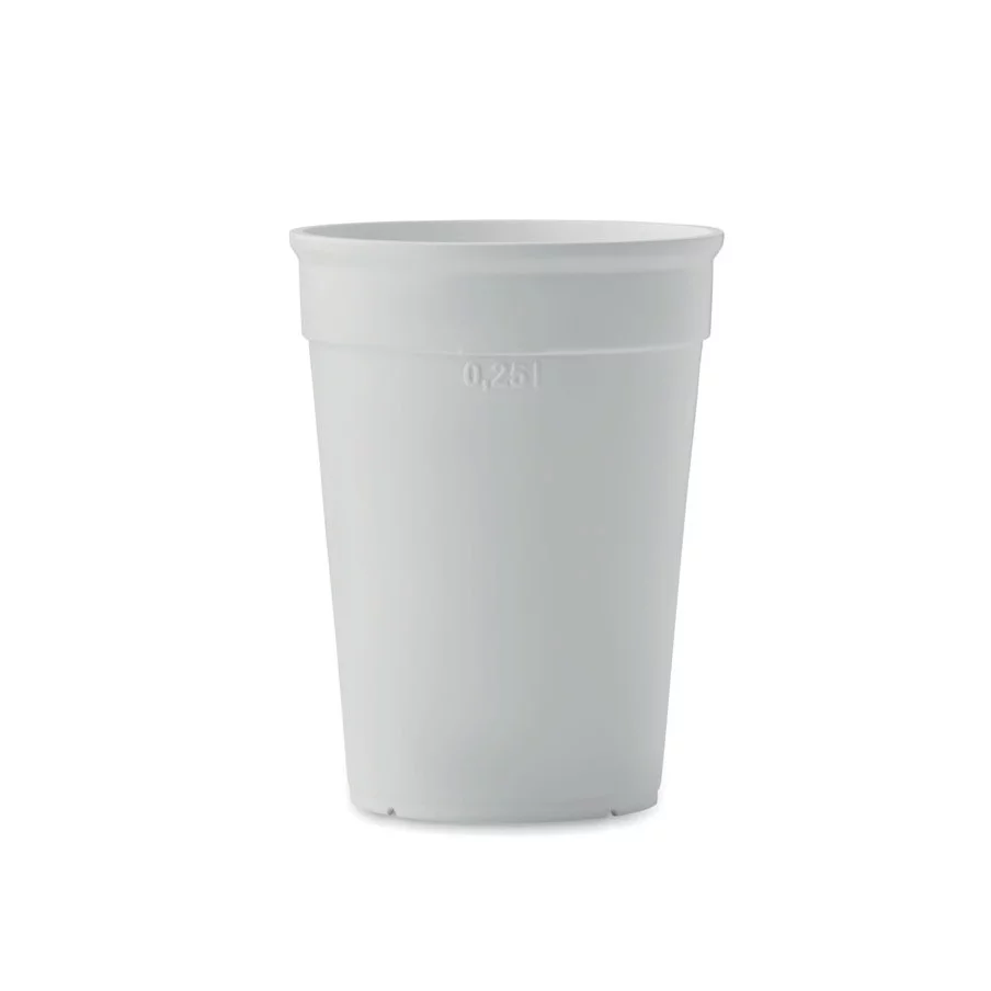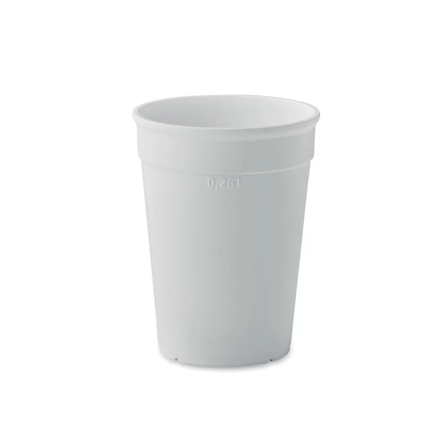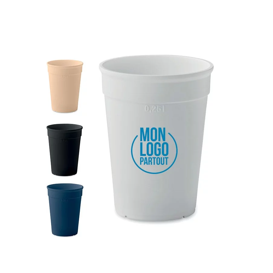 Optez pour la durabilité avec notre gobelet réutilisable en PP recyclé, offrant une capacité de 300 ml. Personnalisez-le selon vos goûts pour une touche unique dans votre routine quotidienne. Faites un geste pour l'environnement tout en profitant de vos boissons préférées.