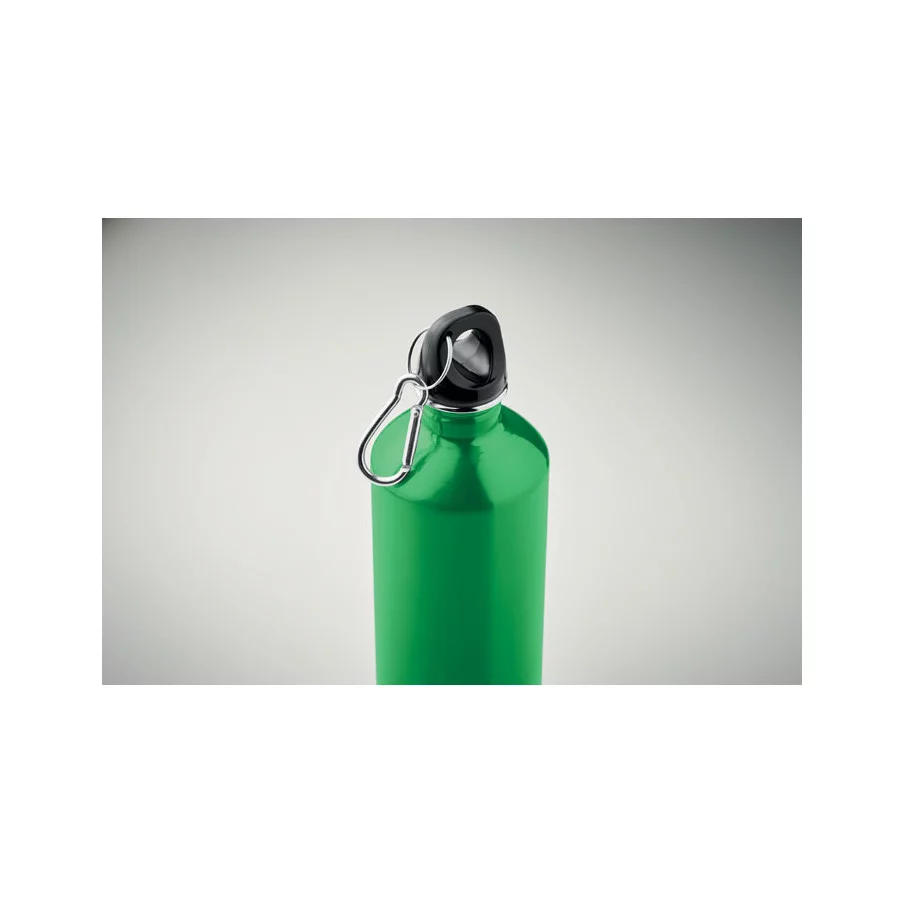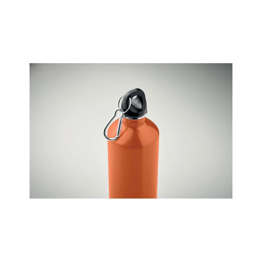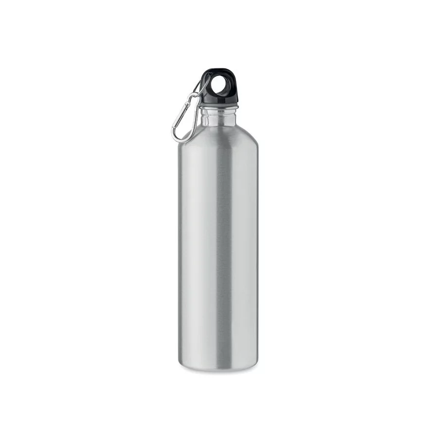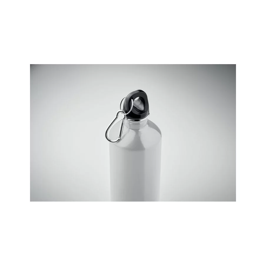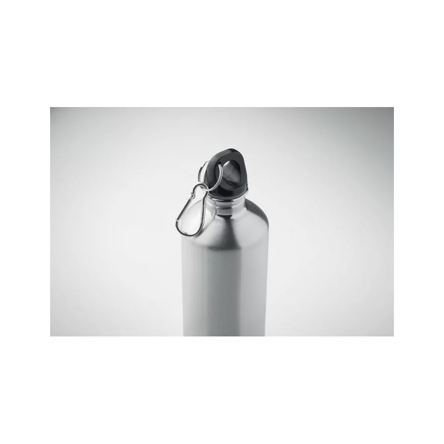 Bouteille personnalisable en acier inoxydable recyclé simple paroi (90 % d'acier inoxydable recyclé et 10 % d'acier inoxydable) avec mousqueton. Capacité : 750 ml. Le mousqueton n'est pas destiné à l'escalade (usage non professionnel). Anti-fuite