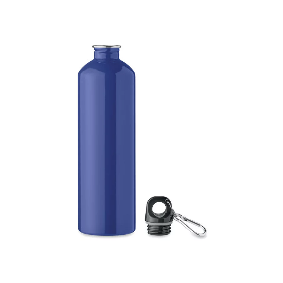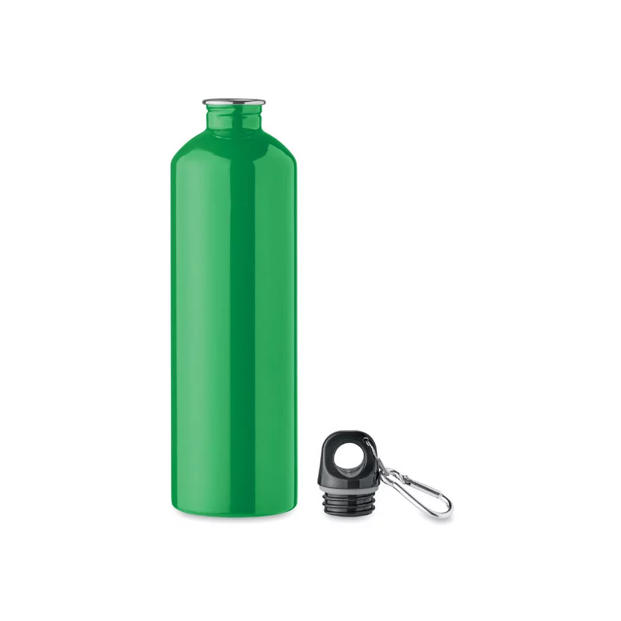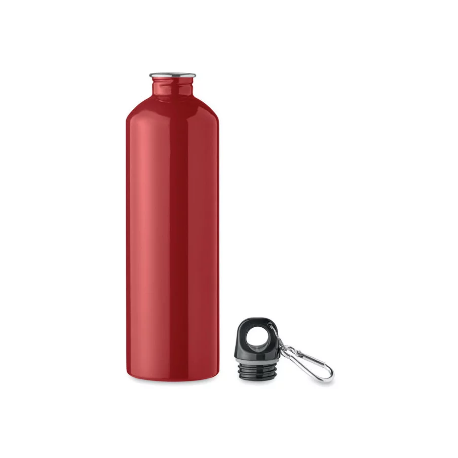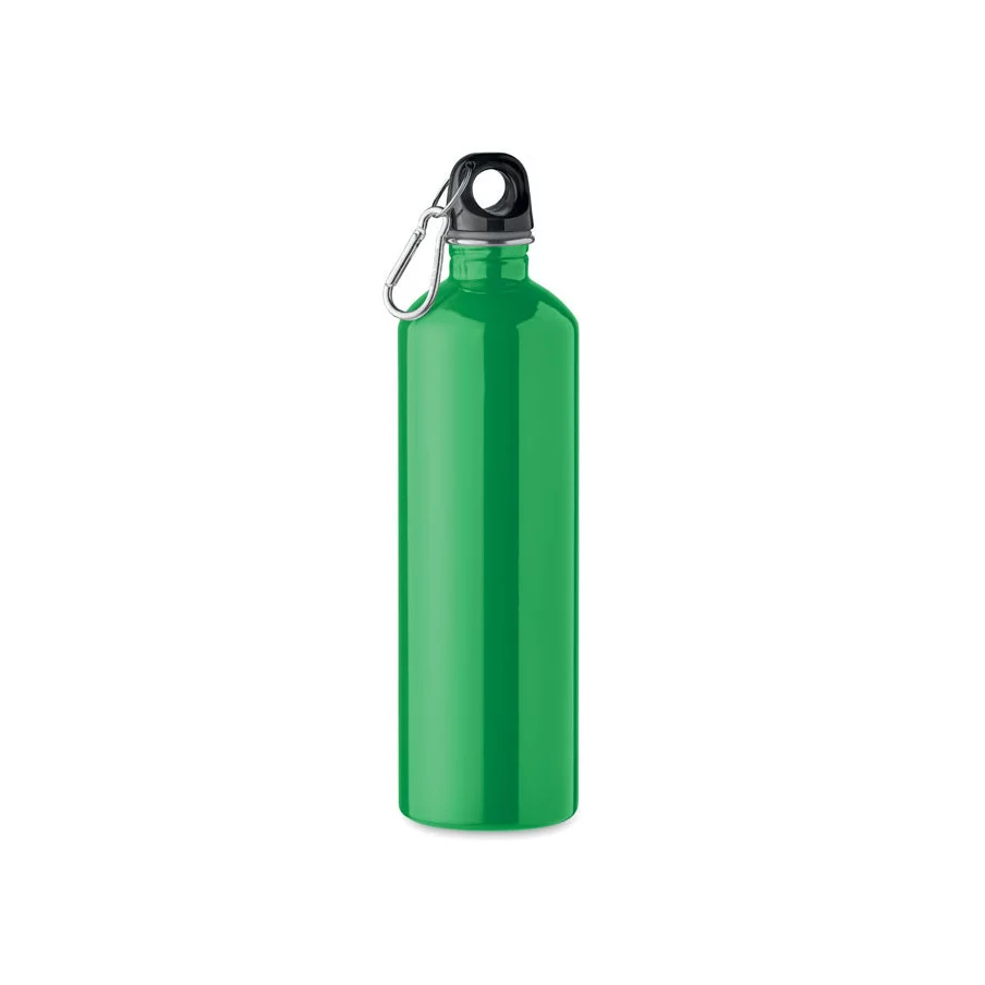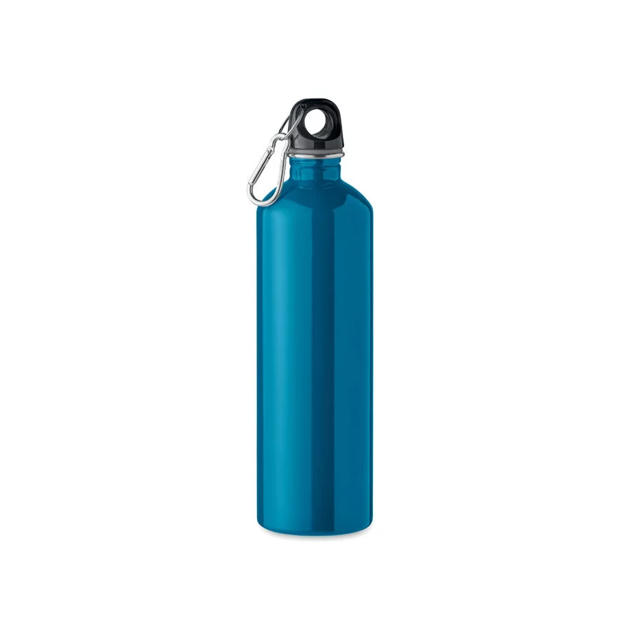 Bouteille personnalisable en acier inoxydable recyclé simple paroi (90 % d'acier inoxydable recyclé et 10 % d'acier inoxydable) avec mousqueton. Capacité : 750 ml. Le mousqueton n'est pas destiné à l'escalade (usage non professionnel). Anti-fuite