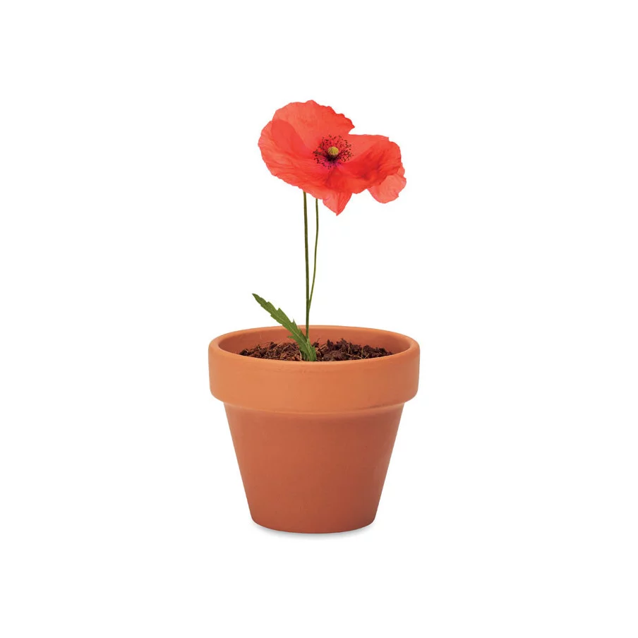 Innovant et écologique, pensez à notre mini pot en terre cuite personnalisable aux couleurs de votre entreprise. Livré avec des graines de coquelicot, mettez de la couleur dans votre communication. Plante herbacée annuelle, le coquelicot se caractériser par la couleur rouge de ses fleurs en forme de tapis. Véritable symbole dans la culture française, les noces de coquelicot représentent huit années de mariage, mais également les combattants de la première guerre dans les pays du Commonwealth à la différence du bleuet pour les militaires français.