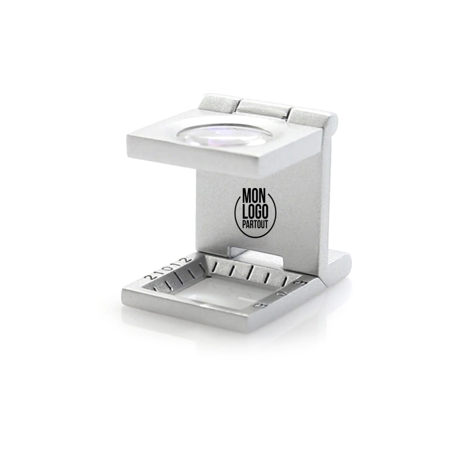 Avec La boîte à objets, personnalisez à vos couleurs notre loupe compte-fils pliante en métal avec un grossissement de 10X. Avec sa lentille en verre et règle de mesure intégrée dans le corps, ce produit promotionnel répondra aux besoins de vos clients. Présentée dans une boîte individuelle.