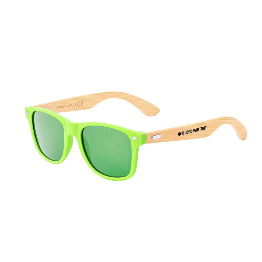 Ces lunettes de soleil sont fabriquées en bambou avec une protection UV400. La monture est en PC de couleurs résistantes et les branches sont en bambou. Les verres sont en acétate de cellulose.