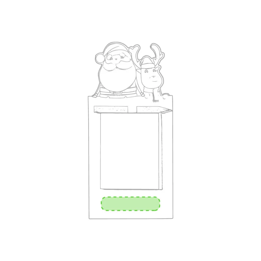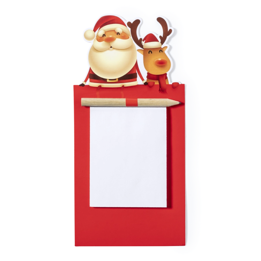 Le magnet publicitaire Larry est en père Noël et son renne. Il comprend 40 feuilles unies et un crayon en bois naturel.