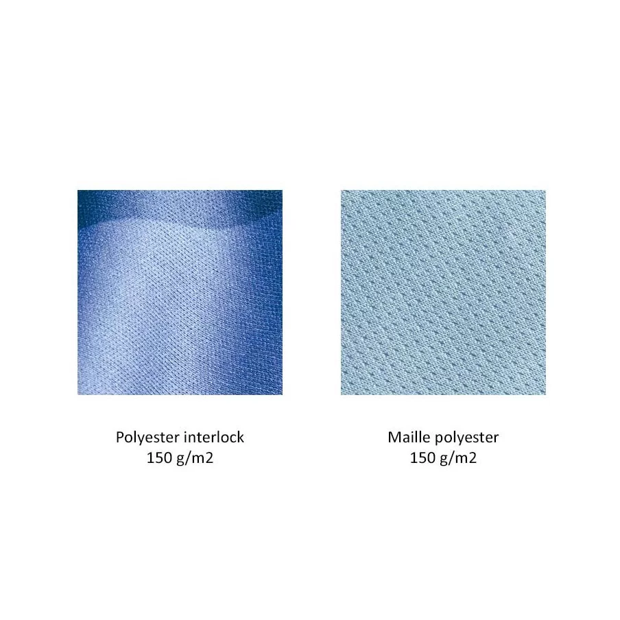 - Matière Face polyester interlock 150 g/m2 et Dos maille polyester 150 g/m2
