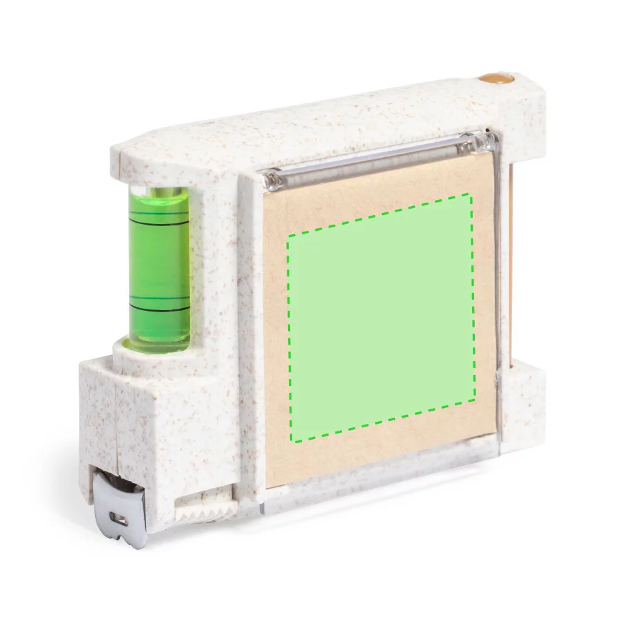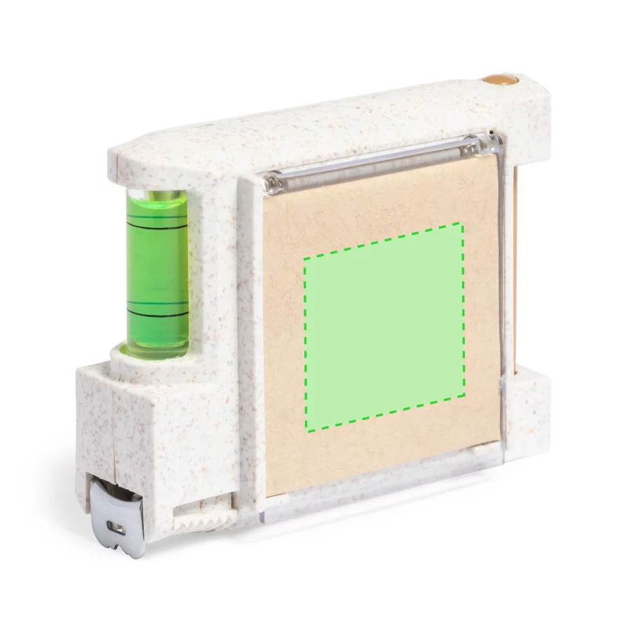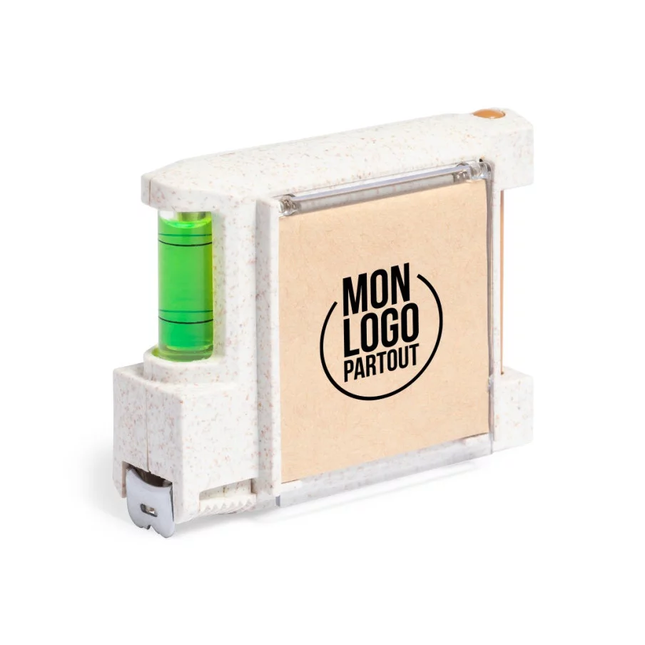 Ce mètre ruban multifonction est conçu avec un boîtier en canne de blé. Il offre de nombreuses fonctionnalités, notamment un niveau intégré, un porte-stylo avec stylo inclus, et un bloc de 12 notes autocollantes de couleur naturelle. Équipé d'un frein et d'un clip de ceinture métallique, il présente des mesures en centimètres et en pouces. Il est présenté dans une boîte individuelle de conception kraft, mettant en valeur son aspect écologique.