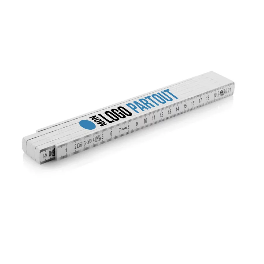 Ce mètre pliable est facile à transporter et à ranger grâce à sa conception compacte. Sa surface blanche offre un espace idéal pour la personnalisation avec votre logo ou message publicitaire, faisant de cet outil un support de communication efficace et pratique pour vos clients, partenaires ou apprentis.