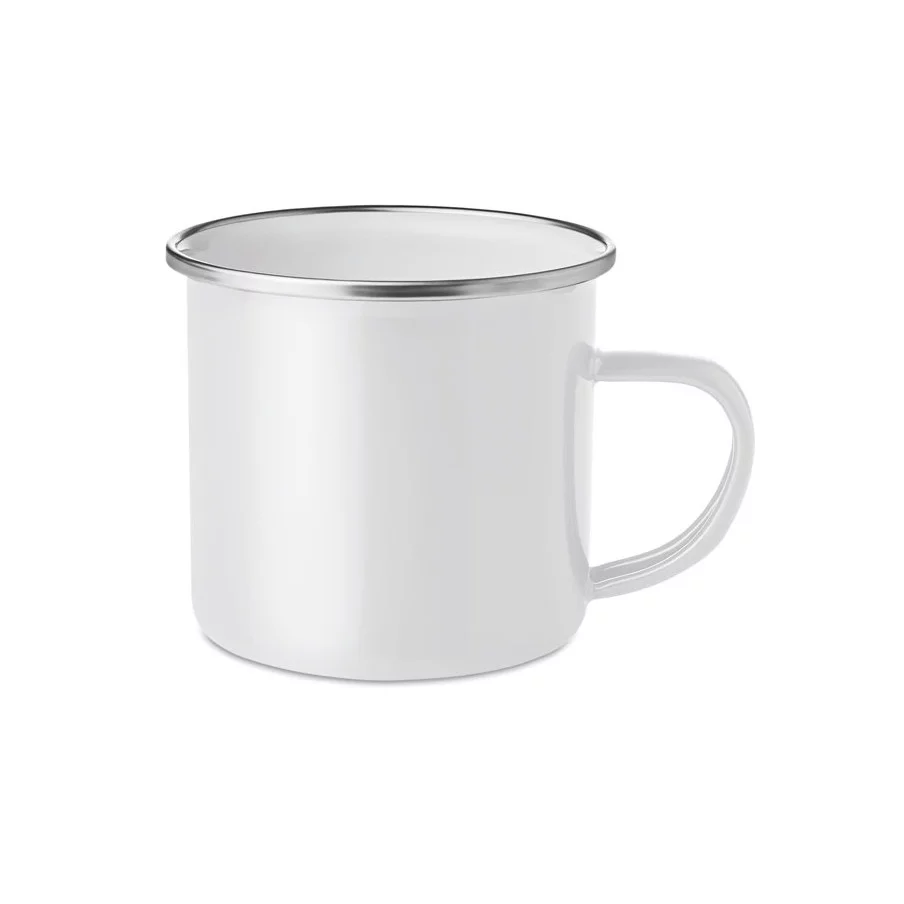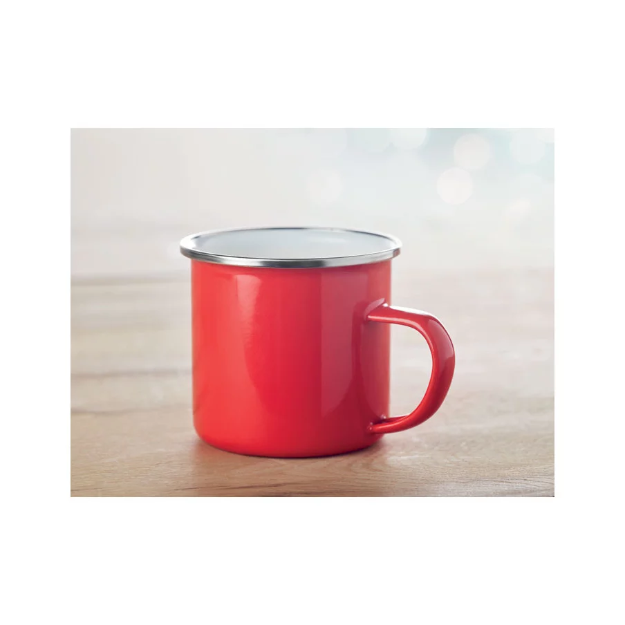 Découvrez un modèle vintage et original avec notre magnifique mug publicitaire en acier avec couche d'émail. Personnalisée à votre image diffusez votre message, texte ou marque auprès de vos clients.