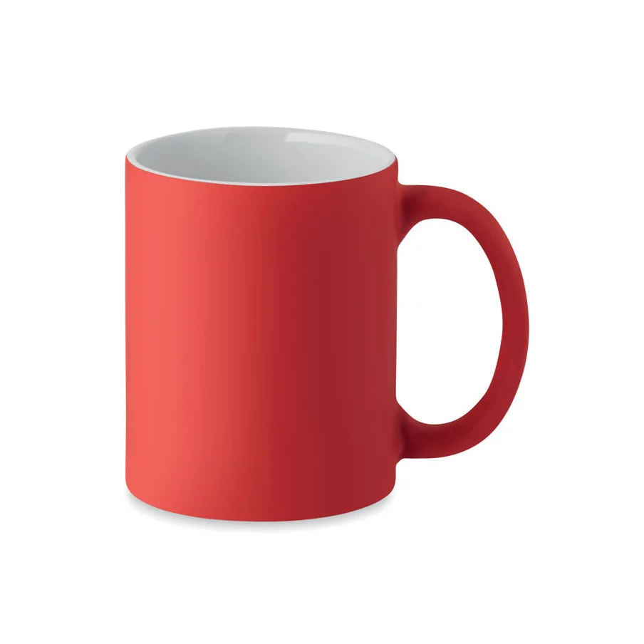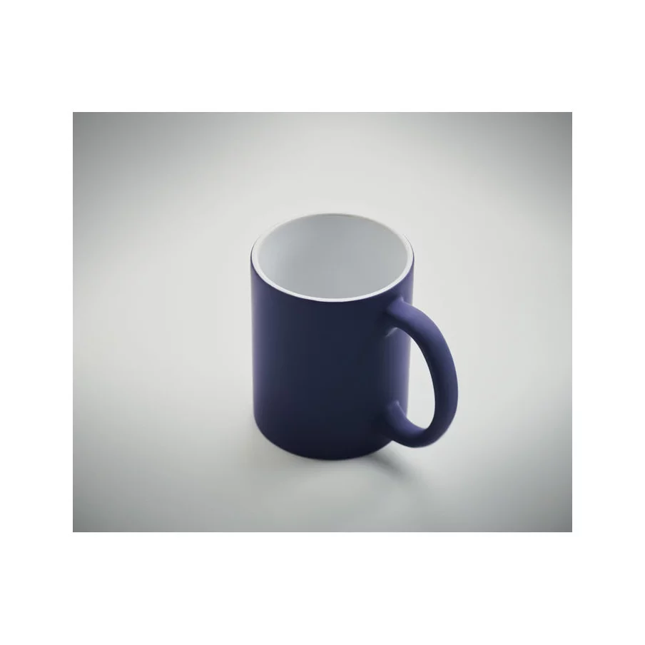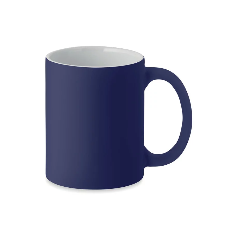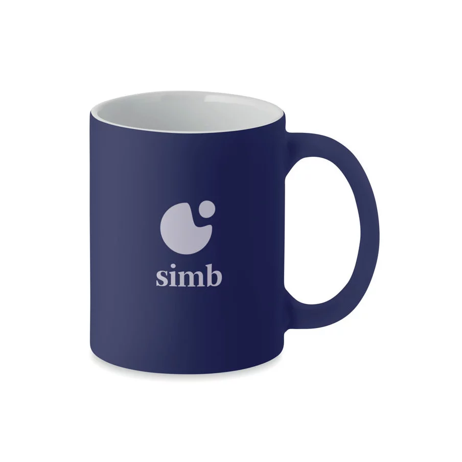 Mug publicitaire cylindrique classique en céramique mate de 300 ml, personnalisable à l'image de votre entreprise. Original avec son intérieur blanc et son extérieur coloré, ce goodies est un incontournable.