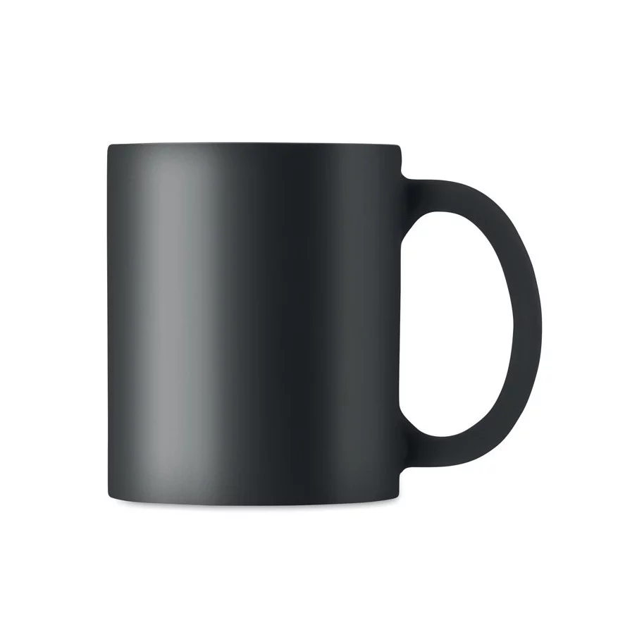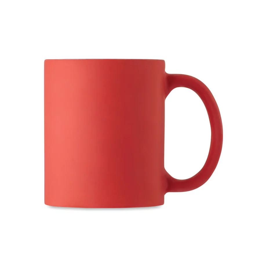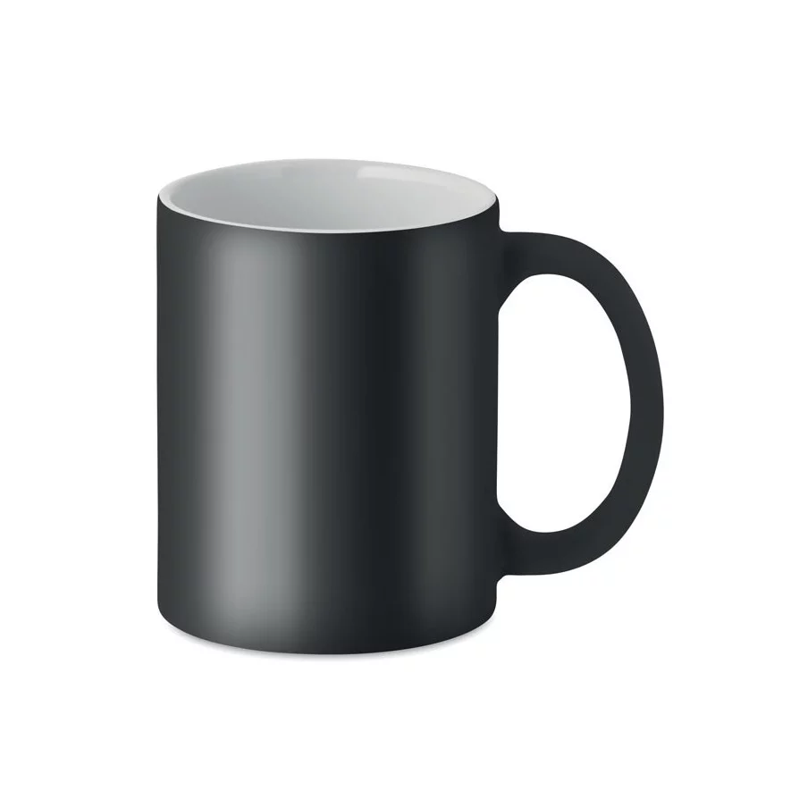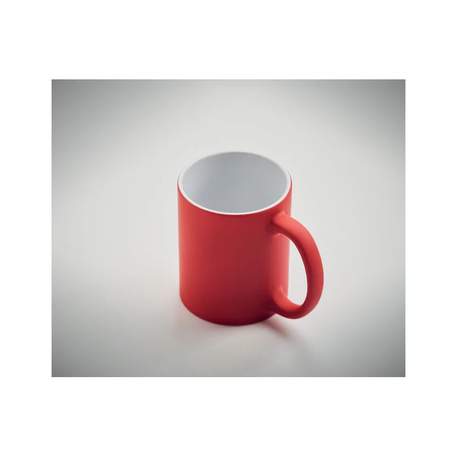 Mug publicitaire cylindrique classique en céramique mate de 300 ml, personnalisable à l'image de votre entreprise. Original avec son intérieur blanc et son extérieur coloré, ce goodies est un incontournable.