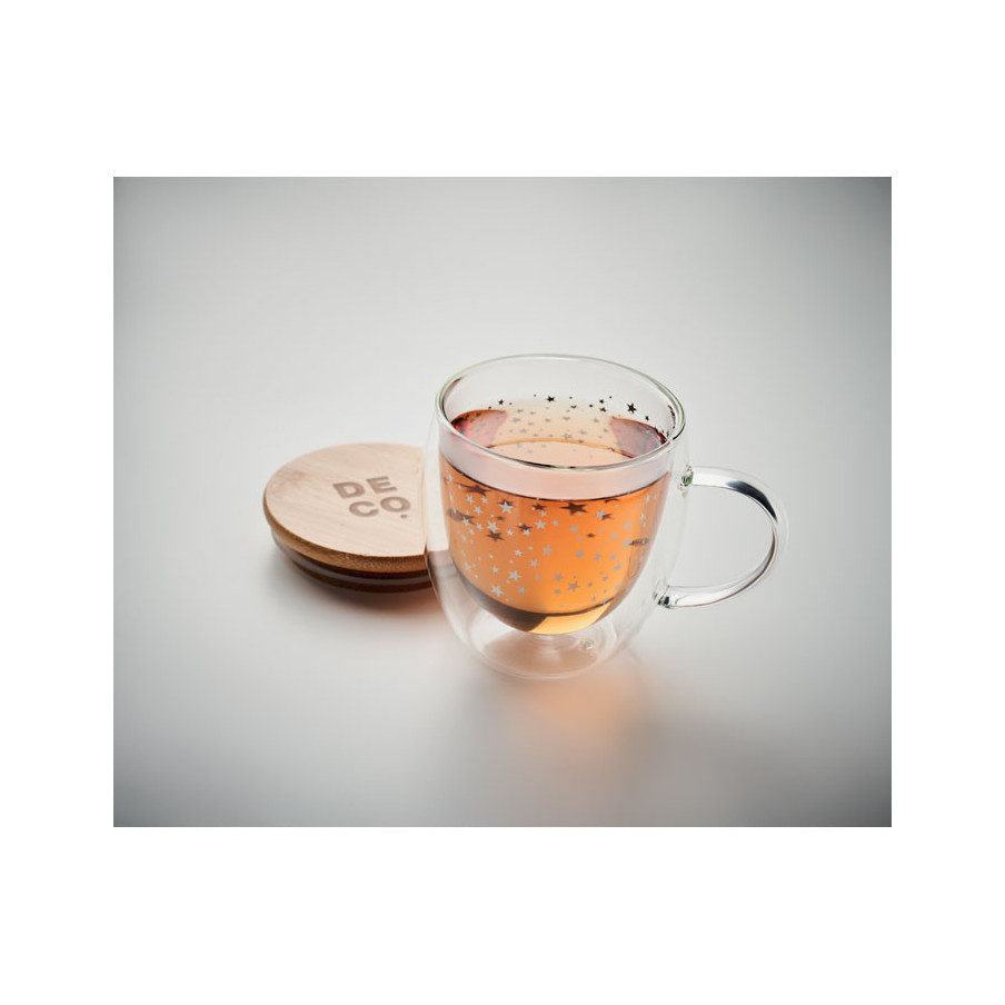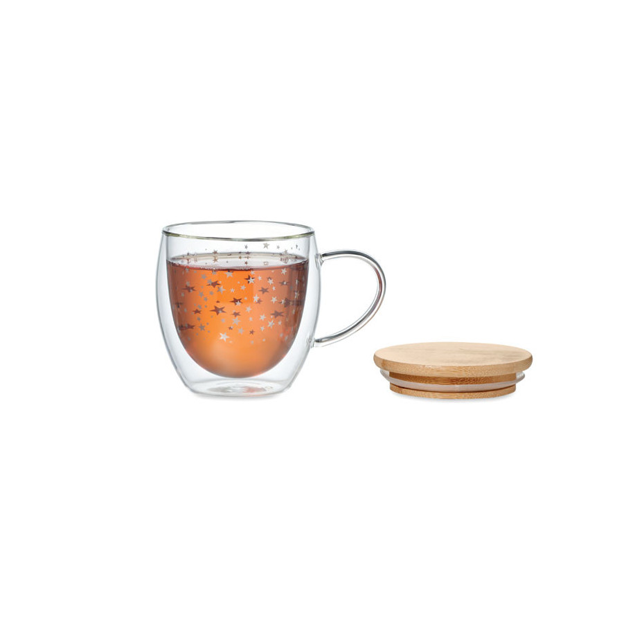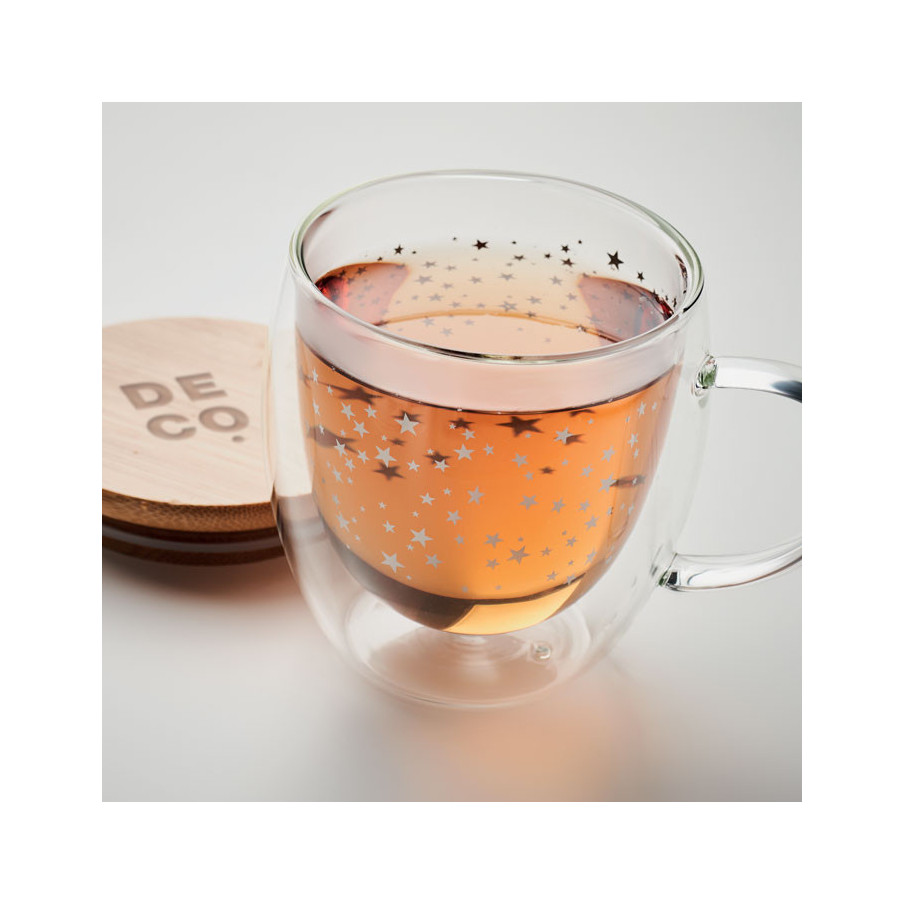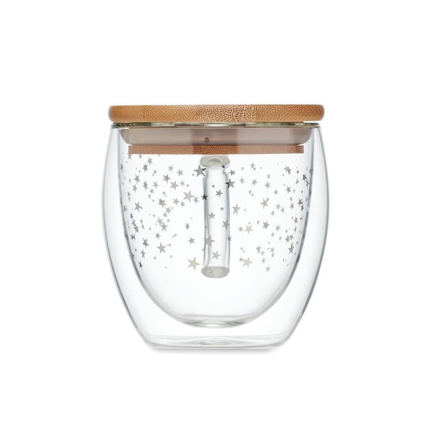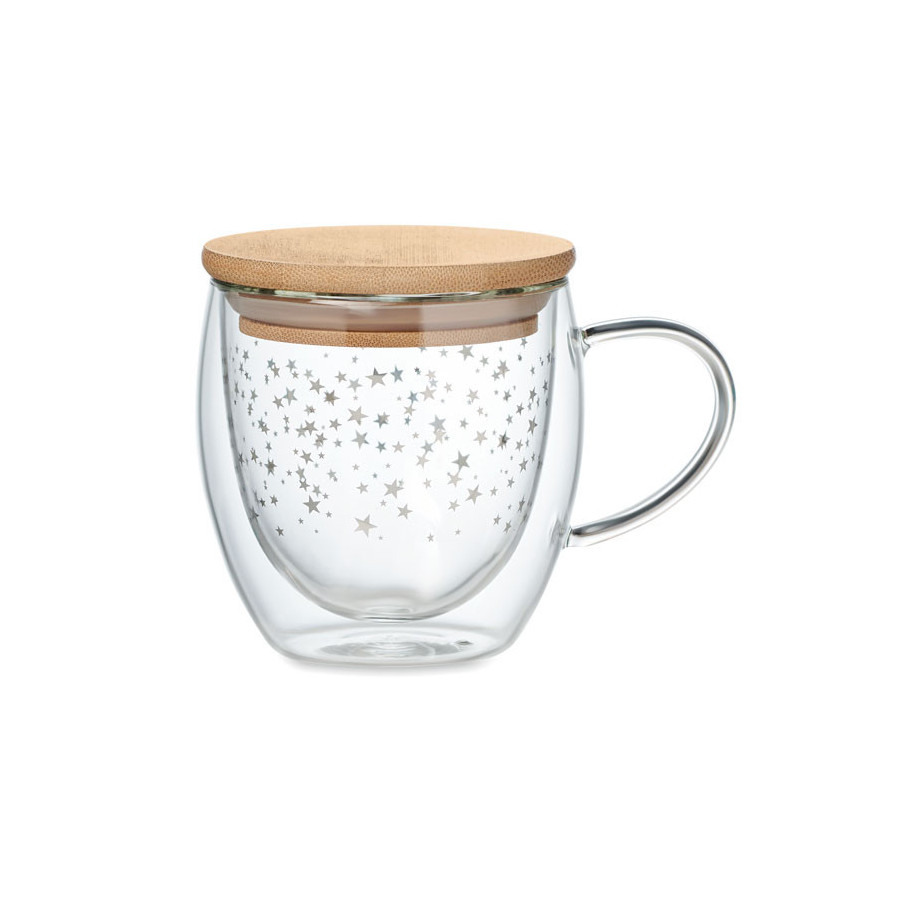 La tasse Sion a un design de Noël avec des étoiles. Il dispose d'un couvercle en bambou et d'une capacité de 220 ml. Attention la tampographie ne résiste pas au lave-vaisselle.