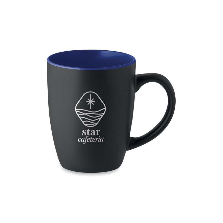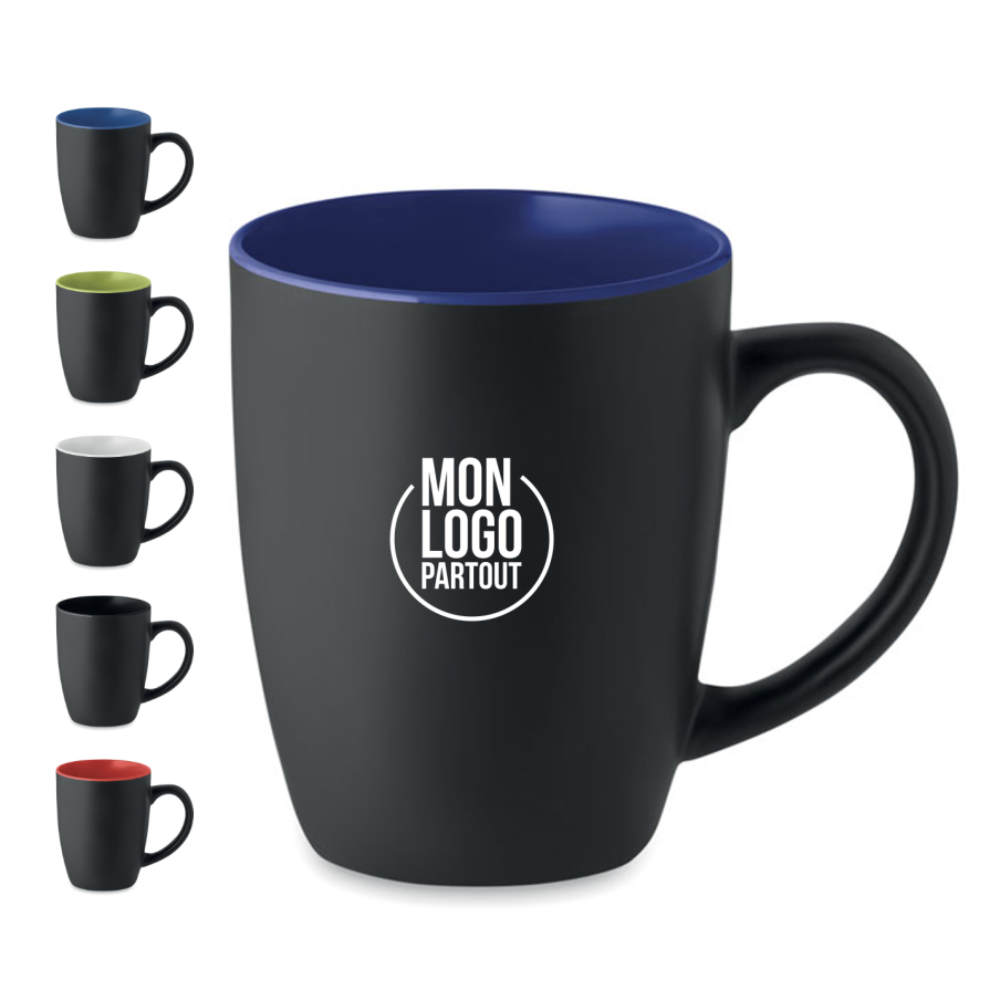 Original et personnalisable, découvrez notre mug publicitaire en céramique noire mate avec intérieur brillant de couleur. D'une contenance de 290 ml, ce goodies est un incontournable.