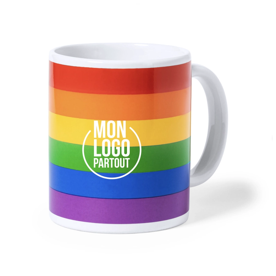 Craquez pour notre mug personnalisable arc-en-ciel d'une capacité de 370 ml. Fabriqué en céramique, ce mug coloré est livré dans une jolie boîte en kraft naturel. Attention la tampographie ne résiste pas au lave-vaisselle.