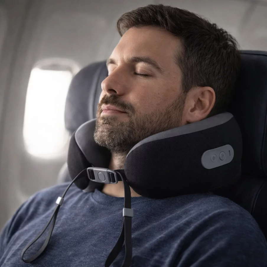 L'oreiller Fontex est conçu pour améliorer le bien-être lors des trajets en avion, en train ou en voiture. Sa fonction massage, activable par un simple bouton marche/arrêt avec témoin lumineux, aide à détendre les tensions cervicales durant le voyage. La fermeture à boucle permet un maintien stable et ajusté autour du cou, assurant une position confortable sur la durée. Grâce à sa batterie de 1200 mAh et son port USB-C moderne, il offre une autonomie fiable et une recharge rapide, tandis que sa housse en polyester facilite son rangement et sa protection.