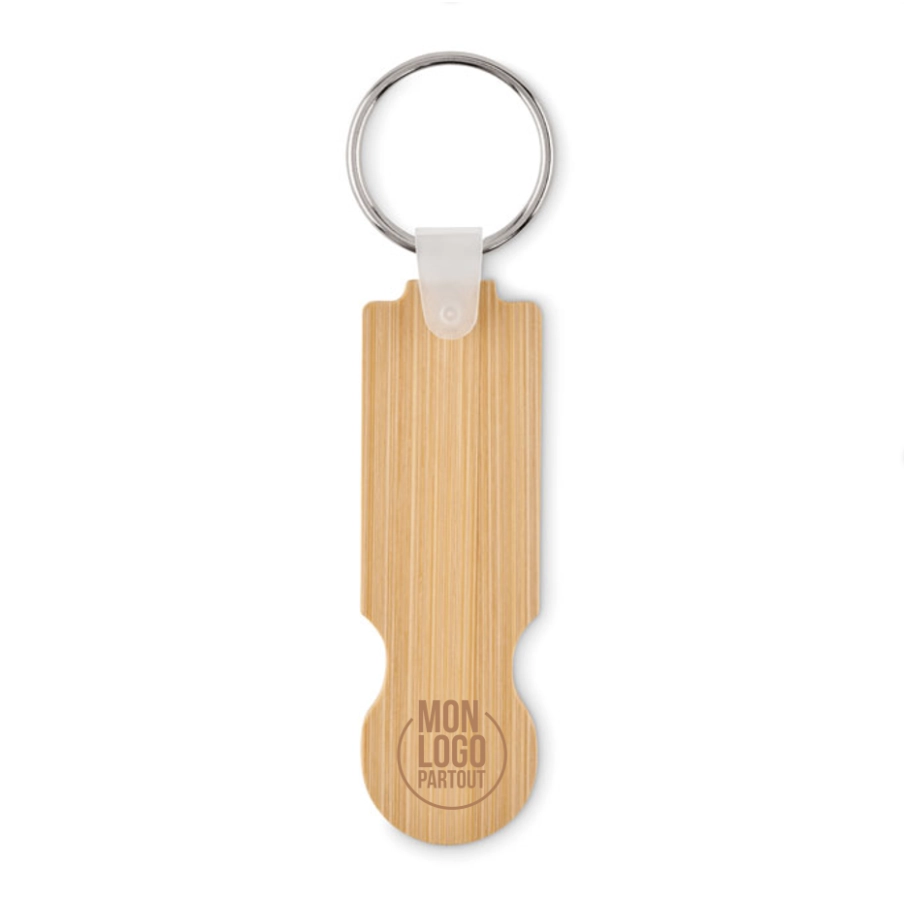 Pratique pendant vos courses, découvrez notre porte-clés promotionnel en bambou avec jeton en euros. Personnalisable à votre image, de goodies est un intemporel.