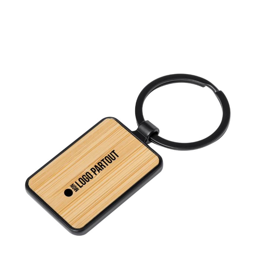 Porte-clés publicitaire élégant en métal et bambou
